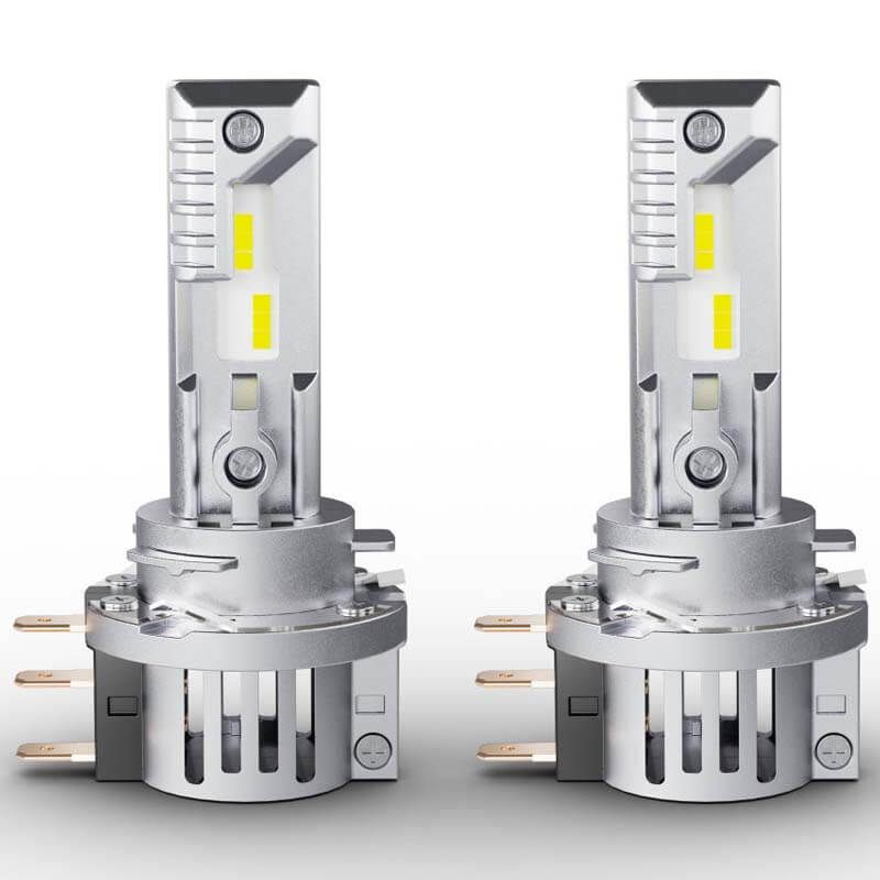 Die neuen Lampen sind für den Sockel H15 (PGJT13t-1) geeignet und wurden entwickelt, um einfach in Fahrzeugen installiert zu werden, es ist kein Transformator oder Gummiverschluss erforderlich. Diese LED-Lampe hat eine Leistung von 16W / 3W, eine Intensität von 1250Lm und 250Lm und wird für Abblendlicht, Fernlicht, Tagfahrlicht und Positionslicht verwendet.