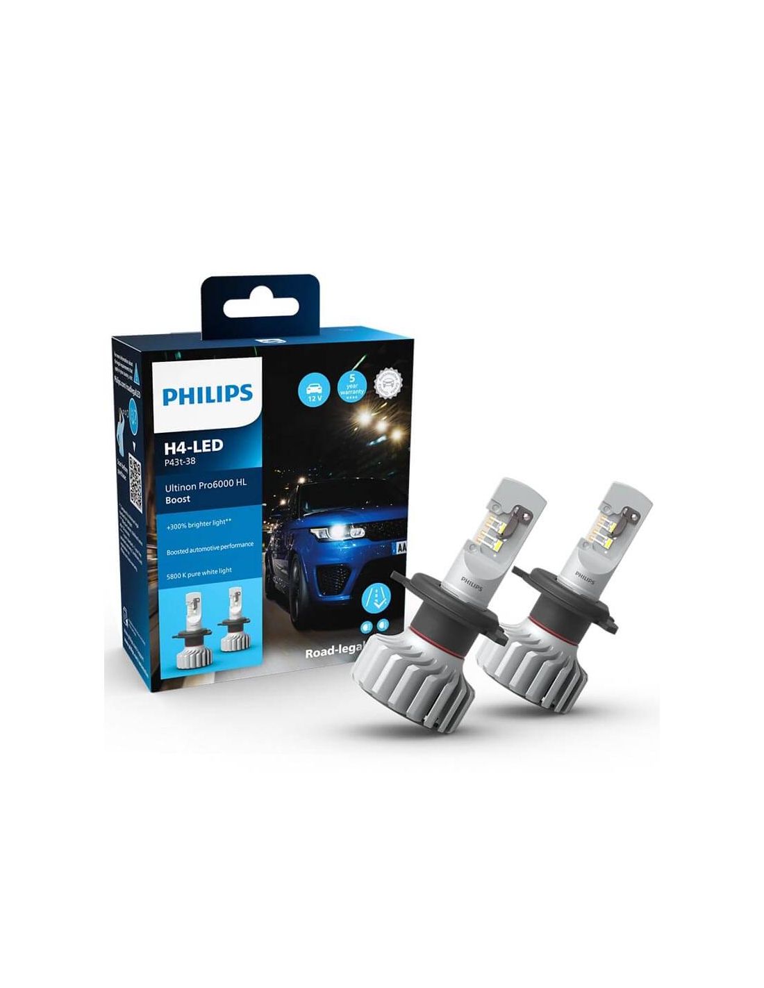 Aktualisiere deine Scheinwerfer mit den in Spanien zertifizierten LED-Lampen H4, Philips Ultinon Pro6000 Boost. Diese hochmodernen Lampen bieten bis zu 300% mehr Licht im Vergleich zur Mindestanforderung ECE R112 und gewährleisten eine sicherere und komfortablere Fahrt.