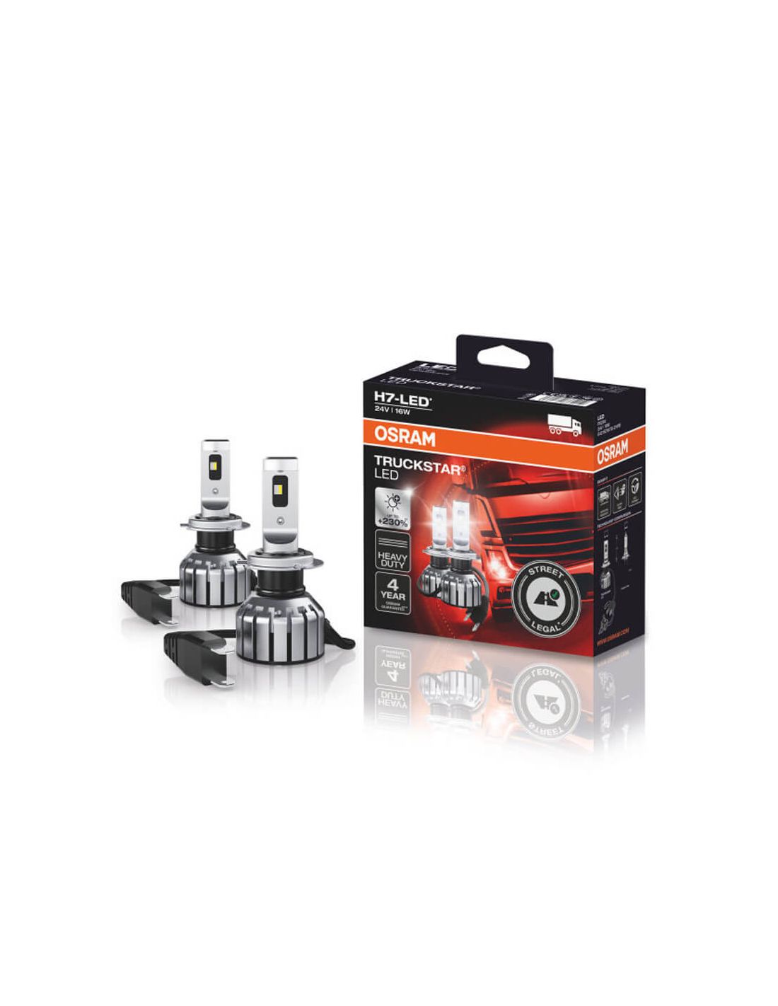 Entdecken Sie die ersten genehmigten H7 24V LED-Lampen in Spanien mit der neuesten LED-Technologie von Osram. Das ist die neue Reihe von Osram TruckStar Pro H7 LED-Lampen für die Scheinwerfer von Fahrzeugen. Diese Lampen bieten 230% mehr Licht (im Vergleich zum minimalen ECE R112), eine genehmigte ECE-Lampenreihe (Legales Straßenlicht).