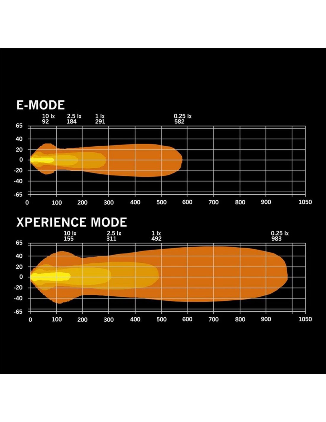 Sie hat einen genehmigten E-Modus (3300 lm und 291 m Reichweite) für legale Nutzung auf der Straße und einen Xperience-Modus mit voller Leistung, 9600 lm und 492 m, der für Situationen mit geringer Sichtbarkeit und anspruchsvolles Fahren gedacht ist. Das Positionslicht in weiß oder amber verstärkt die seitliche Sichtbarkeit und verleiht eine individuelle Note.