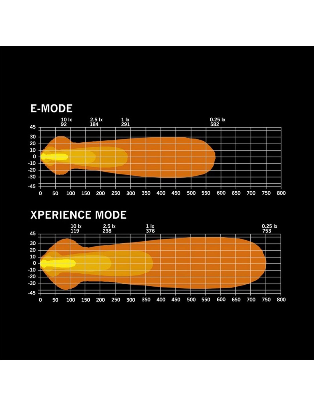 Sie verfügt über mehrere Beleuchtungsmodi, die auf verschiedene Bedingungen abgestimmt sind: der genehmigte E-Modus, ideal bei Regen oder Schnee zur Reduzierung von Reflexionen, und der Xperience-Modus, der in den dunkelsten Nächten volle Leistung entfaltet. Zudem erhöht das Positionslicht in Weiß und Amber die seitliche Sichtbarkeit.
