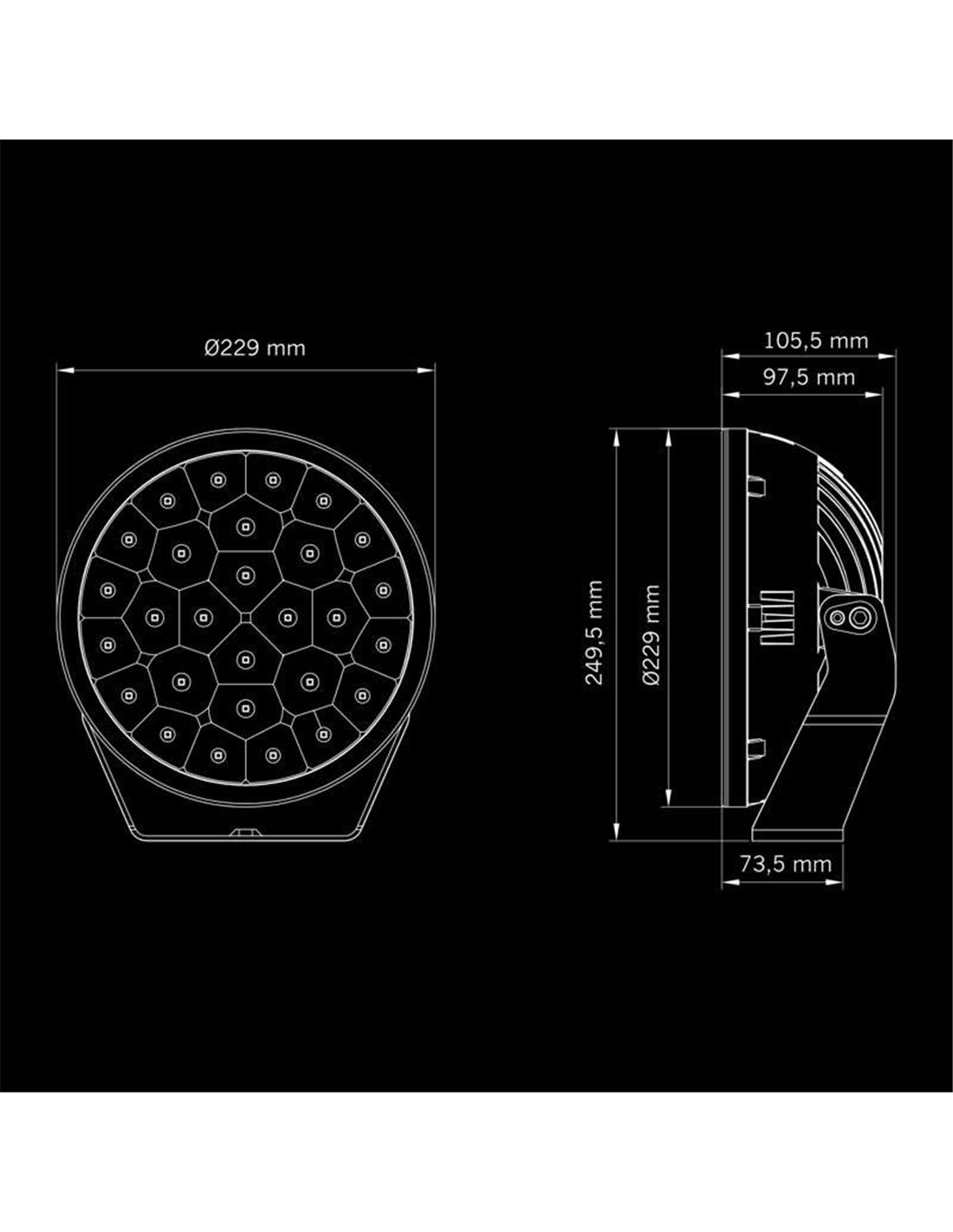 Das YUKON 2.0 9" SPOT wurde für diejenigen entwickelt, die maximale Lichtleistung ohne unnötige Elemente suchen. Sein konzentrierter Lichtstrahl ermöglicht es, bis zu 1074 Meter bei 1 lux zu erreichen, mit einer Intensität von 10.000 echten Lumen, ideal für Fahrten im Freien oder unter anspruchsvollen Fahrbedingungen.