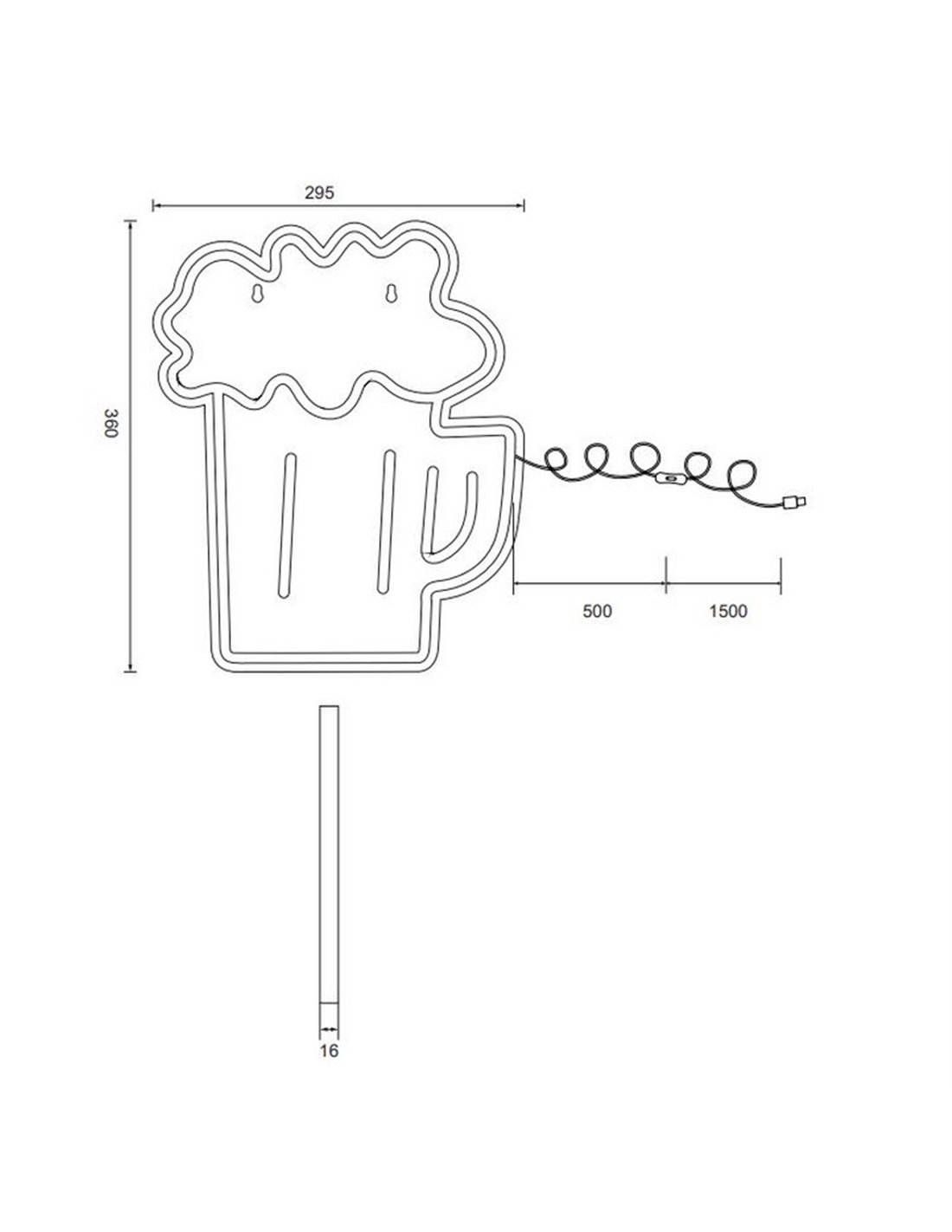 Das Modell BEER ist perfekt für alle, die ein dekora@tives LED Neonlicht suchen, das Freude und Stil bringt. Ihr originelles Design schafft eine warmherzige und lustige Atmosphäre, ideal für informelle oder thematische Räume. Mit geringem Verbrauch, langer Lebensdauer und einfacher Installation ist sie eine kreative Wahl, um jeden Innenraum mit Persönlichkeit zu beleuchten.