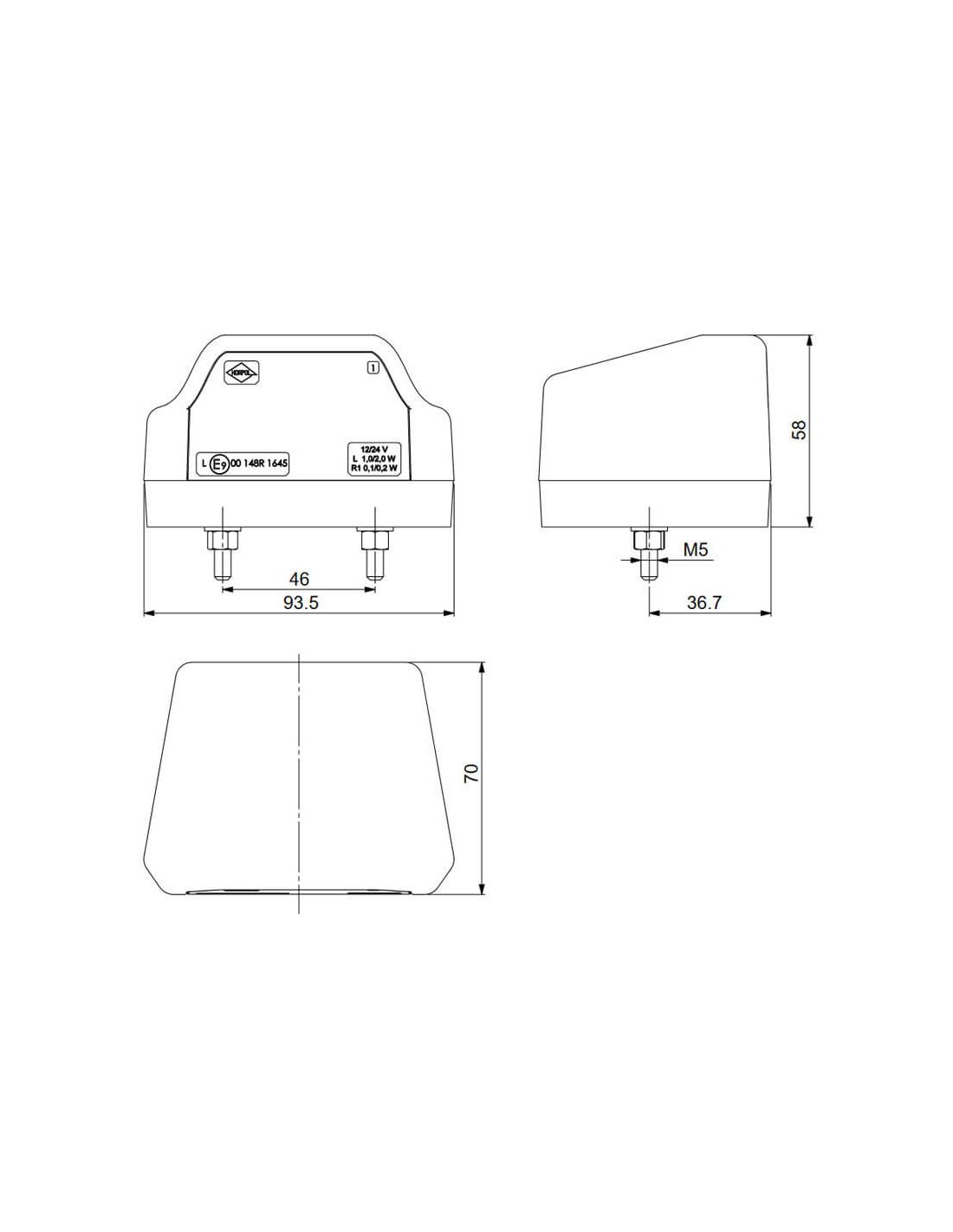 Zugelassene LED-Nummernschildbeleuchtung mit 0,5 Metern Kabel Modell LTD 2833 von Horpol, geeignet für Fahrzeuge mit 12 und 24V. Die LED-Nummernschildbeleuchtungen von Horpol sind leistungsstark und verfügen über die Zulassung L R1, die Maße können Sie auf einem der Fotos sehen.