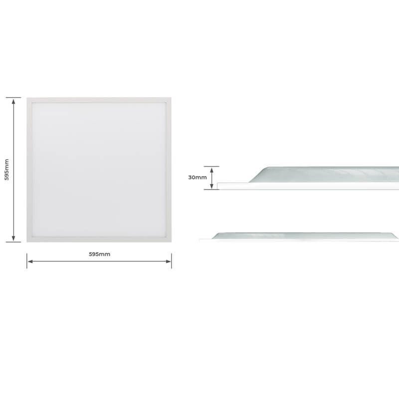 LED-Panel 60x60 mit UGR<19 (595x595x30) mit einer Leistung von 39W, einer Lichtintensität von 3500Lm, einer Lebensdauer von 30.000H (L70 25ºC), einem Lichtstrahlwinkel von 120º und in 2 Lichttönen erhältlich, natürlichem Licht 4000K und kaltem Licht 6500K, die Farbe des Panels hat den RAL-Code 9016, dieses Modell kommt mit 3 Jahren Garantie.