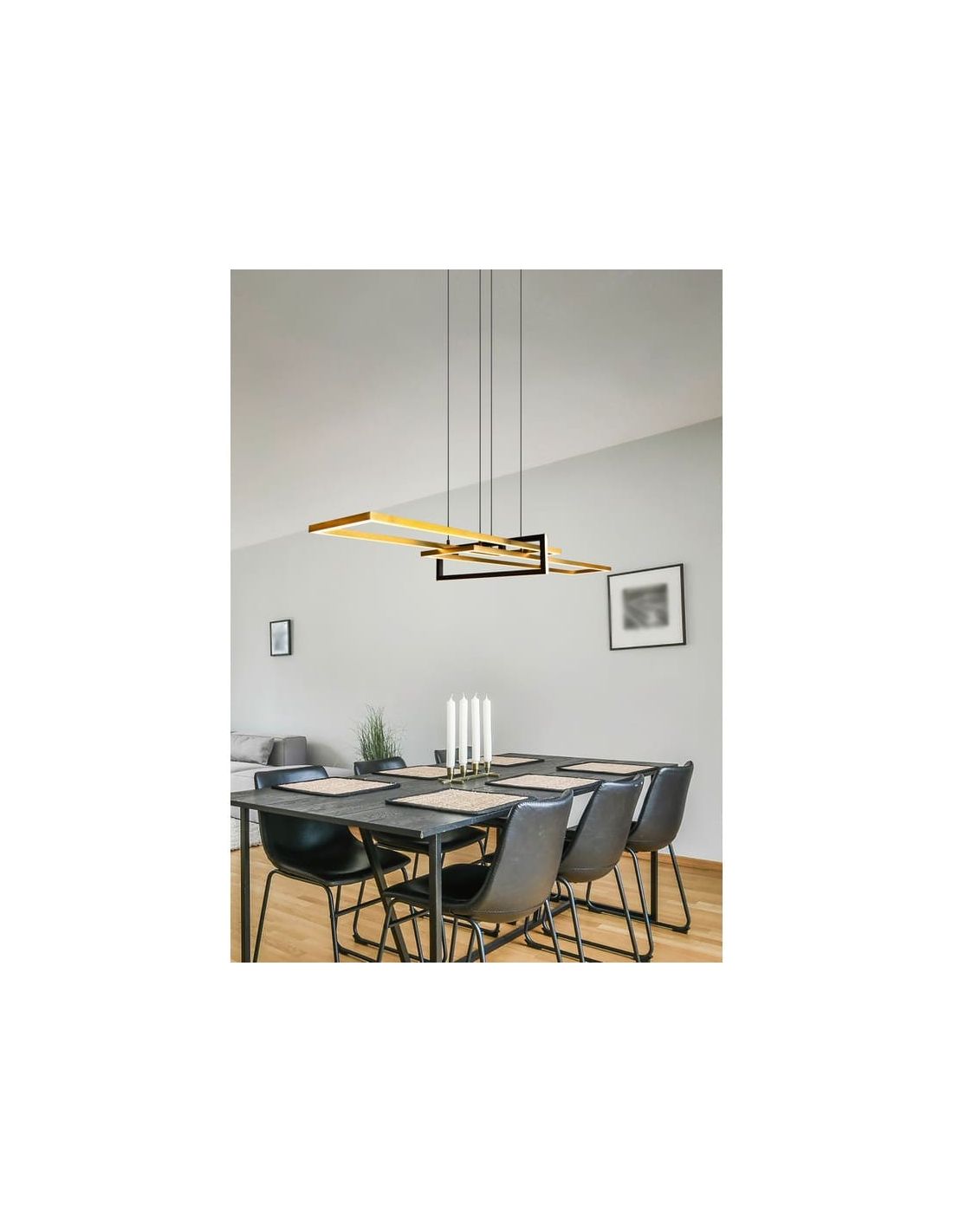 Mit Abmessungen von 110 cm Breite, 150 cm Höhe und 40 cm Tiefe ist die LED Pendelleuchte SALINAS die perfekte Wahl für alle, die eine moderne, vielseitige und stilvolle Beleuchtung für ihr Zuhause suchen.