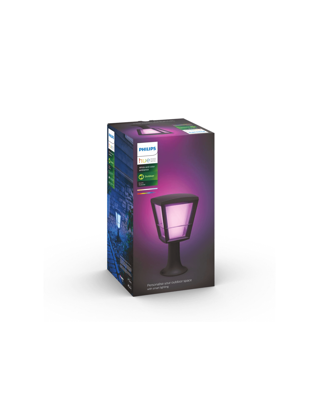 Bringen Sie die Hue-Technologie in Ihre Gärten, Terrassen und Patios (IP44) mit dem Podest für Außenbereiche Econic. Sie kann mit Ihrer Hue-Brücke verbunden werden, um alle modernen intelligenten Funktionen wie Fernsteuerung und Programmierung zu nutzen. (Die Hue-Brücke ist nicht im Lieferumfang enthalten). Abmessungen: Höhe 32,2 cm, Länge 16,3 cm, Breite 16,3 cm und Gewicht 1,5 kg.