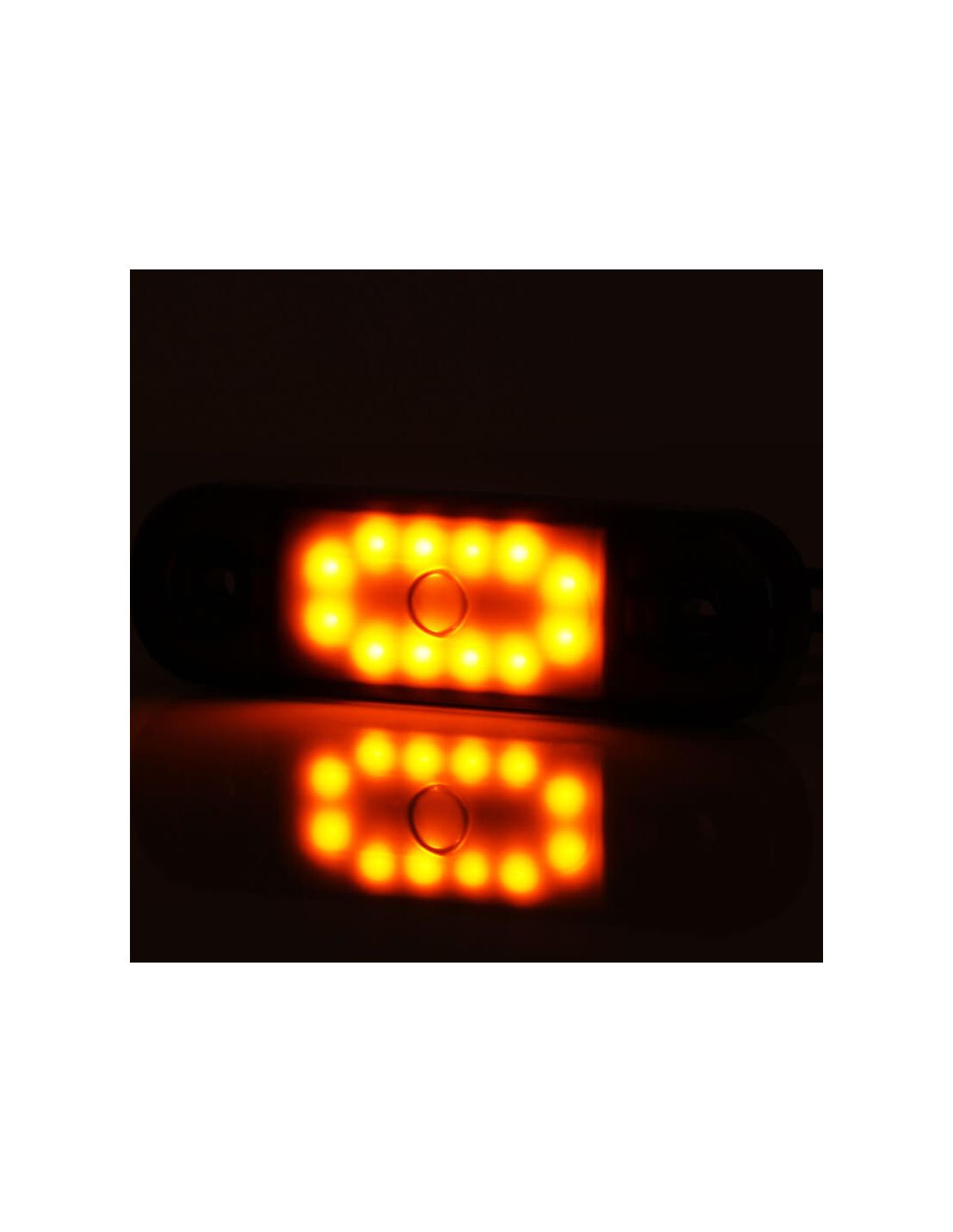 LED Positionslampe W275.2 BLACK, ausgestattet mit 12 sichtbaren LEDs und kompatibel mit 12V und 24V. Verfügbar in den Farben Amber (SM1), Weiß (AD) und Rot (R1D) mit flexibler Installation in horizontaler oder vertikaler Position. Enthält 24 cm Kabel für eine einfache Montage.