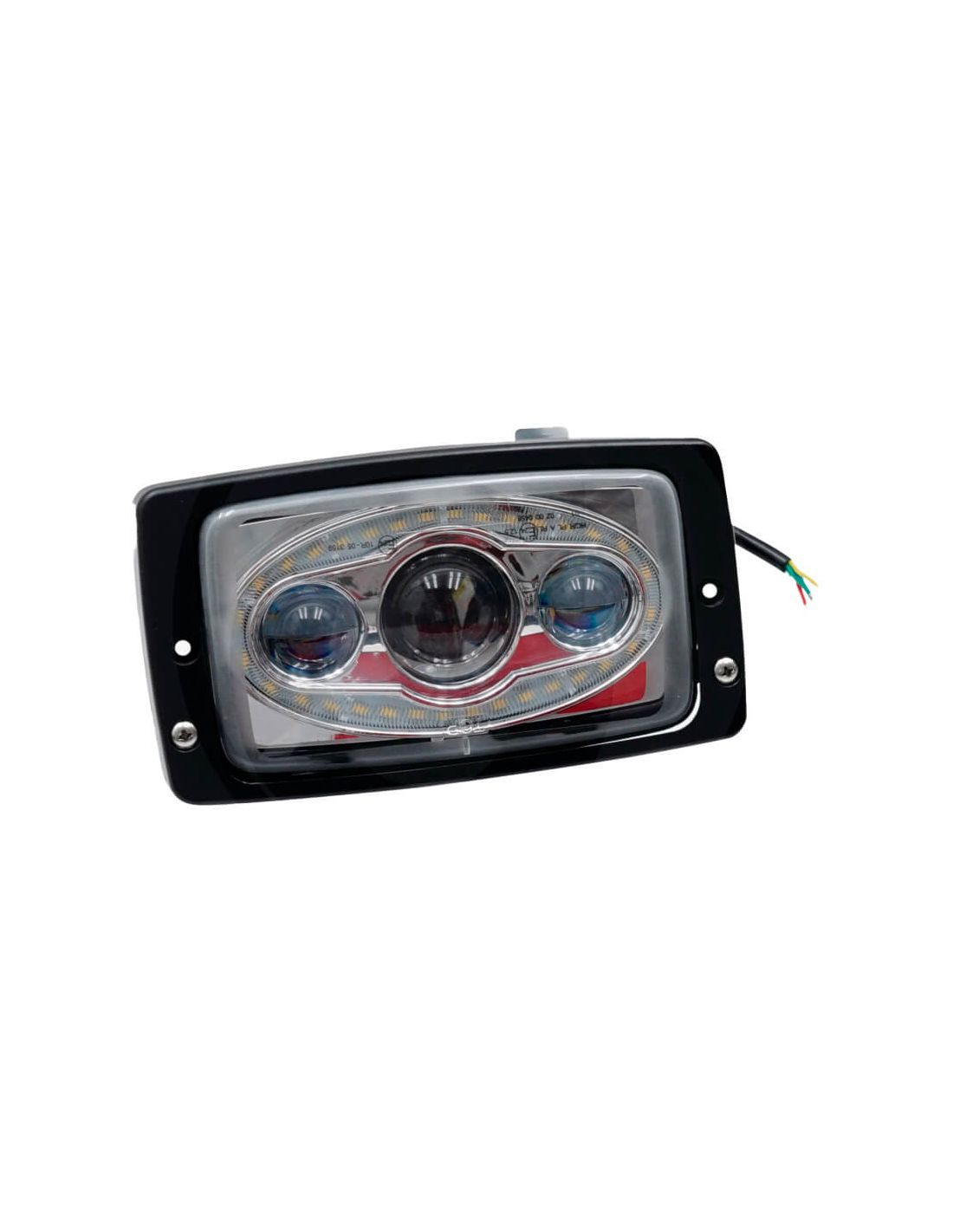 Genehmigter rechteckiger Front-LED-Scheinwerfer mit den Funktionen Fernlicht, Abblendlicht, Standlicht und Tagfahrlicht, dieser LED-Scheinwerfer ist rechteckig und wird eingebaut installiert. Er kann in Installationen von 10 bis 30V installiert werden und ist vollständig wasserdicht und schlagfest, genehmigt für den öffentlichen Verkehr ECE R7 | ECE R87 | ECE R112 | ECE R10 | CE | RoHS.