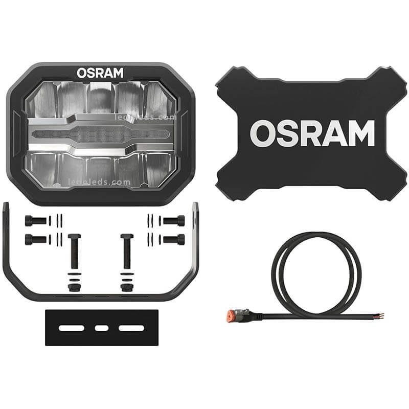 Enthält eine Unterkonstruktion und Kabel mit Stecker für die Installation, ebenfalls eine Abdeckung des Scheinwerfers mit dem Osram-Logo für den Einsatz, wenn er nicht verwendet wird. Bietet Schutz gegen Verpolung, um Schäden durch falsche Verbindungen zu vermeiden, und 45 cm Kabel für die Installation.