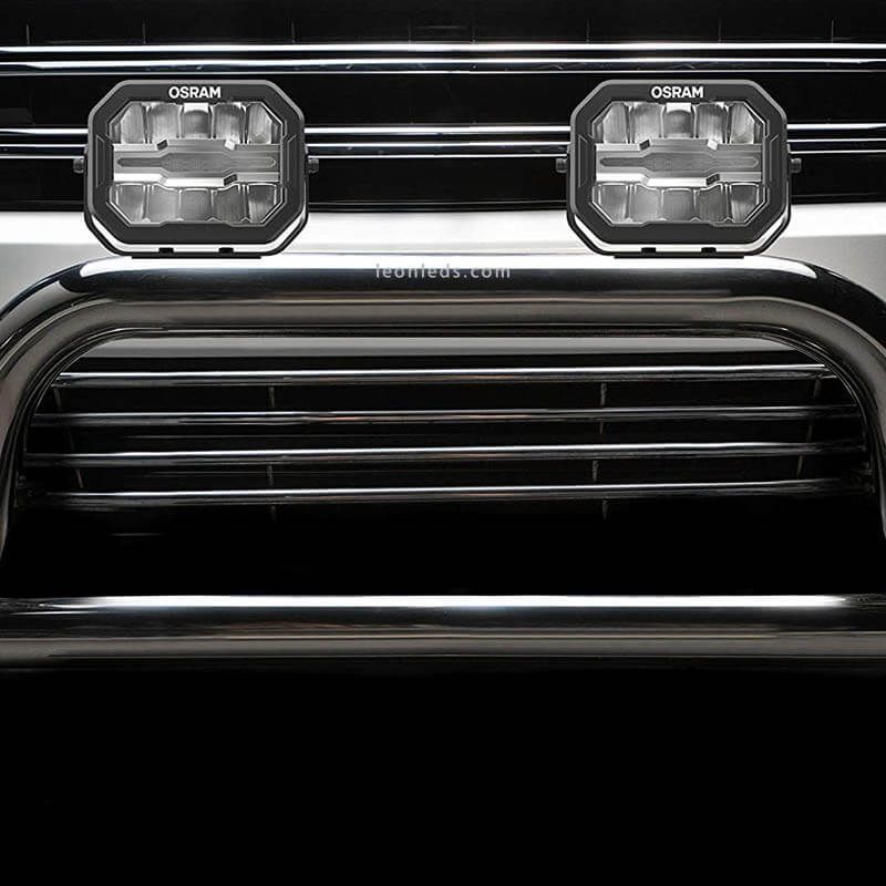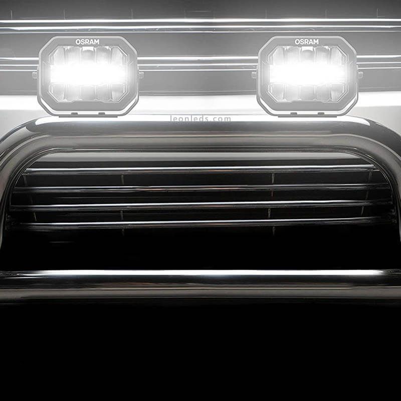 Der lange LED-Scheinwerfer mit genehmigtem Positionslicht von Osram trägt die Bezeichnung MX240-CB Cube und bietet eine Leistung von 40W (16 Hochleistungs-LEDs von Osram) für große Entfernung und 1W für das Positionslicht (10 LEDs), die Lichtintensität beträgt 4.000Lm mit einem weißen Lichtton von 6000K. Dieser LED-Scheinwerfer ist mit EMC R10, ECE R7 für Positionslicht und ECE R112 für Fernlicht mit 50 Lichtpunkten genehmigt, sodass er in jedem PKW, 4x4 oder anderen Fahrzeugen, die im öffentlichen Straßenverkehr verkehren (nach vorheriger Genehmigung und TÜV), sowie in landwirtschaftlichen oder industriellen Fahrzeugen installiert werden kann.