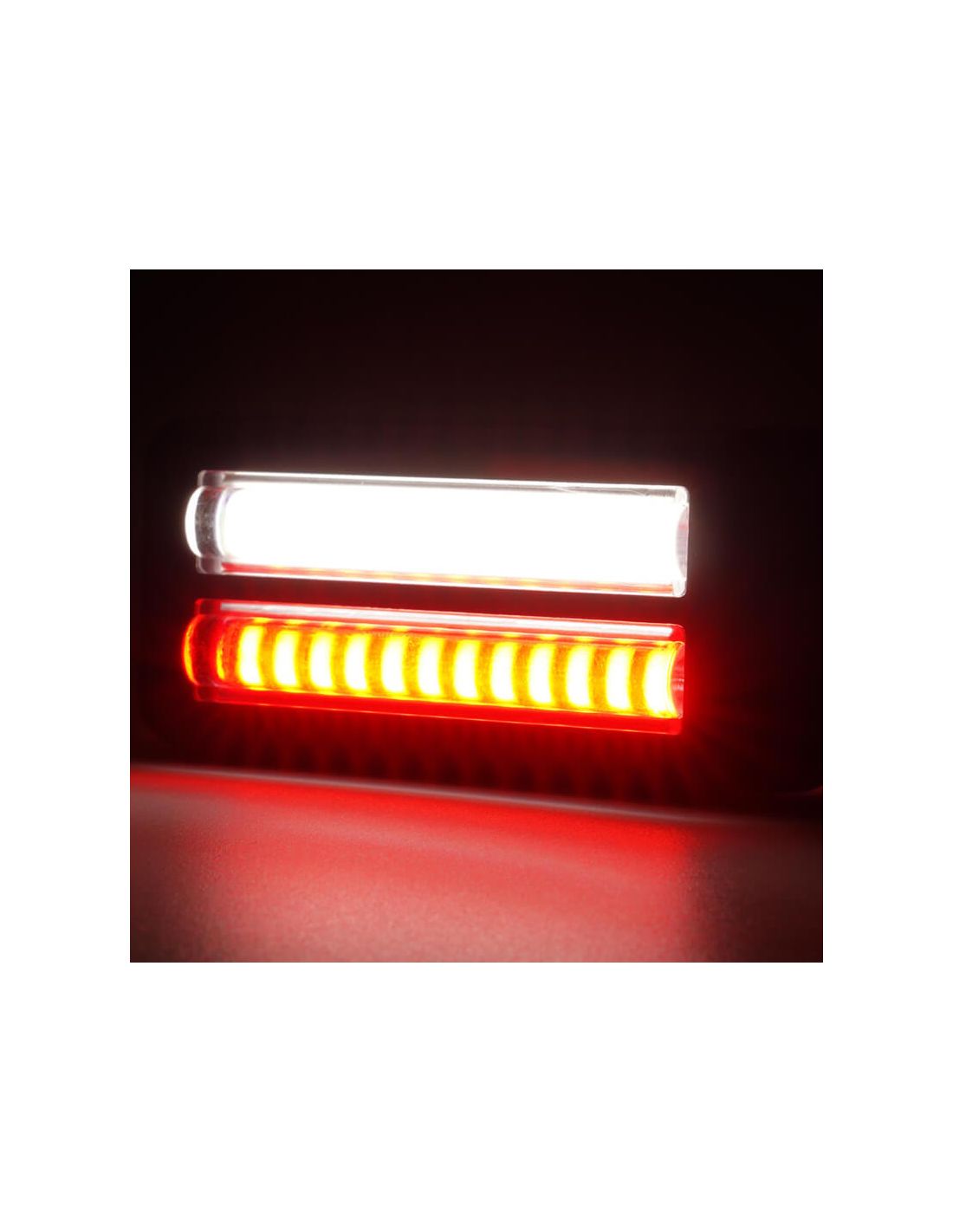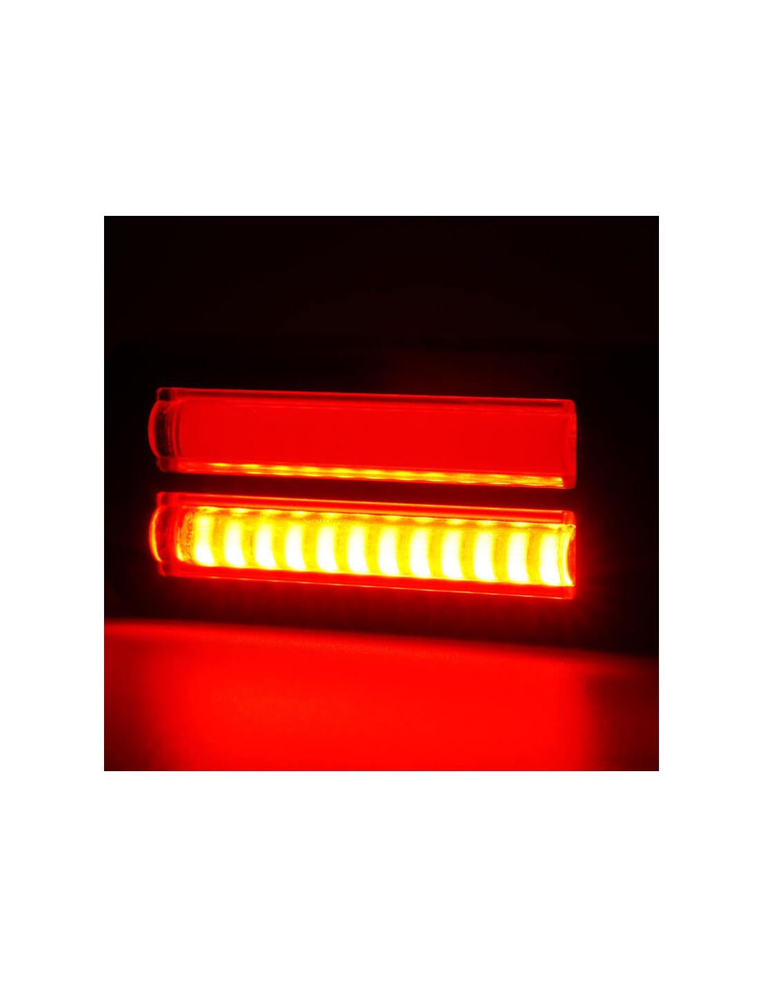 Ihr Design mit doppelter LED-Linie liefert helles, gleichmäßiges und gut sichtbares Licht, wodurch die Sicherheit und Sichtbarkeit auf der Straße oder während der Manöver erhöht werden.
