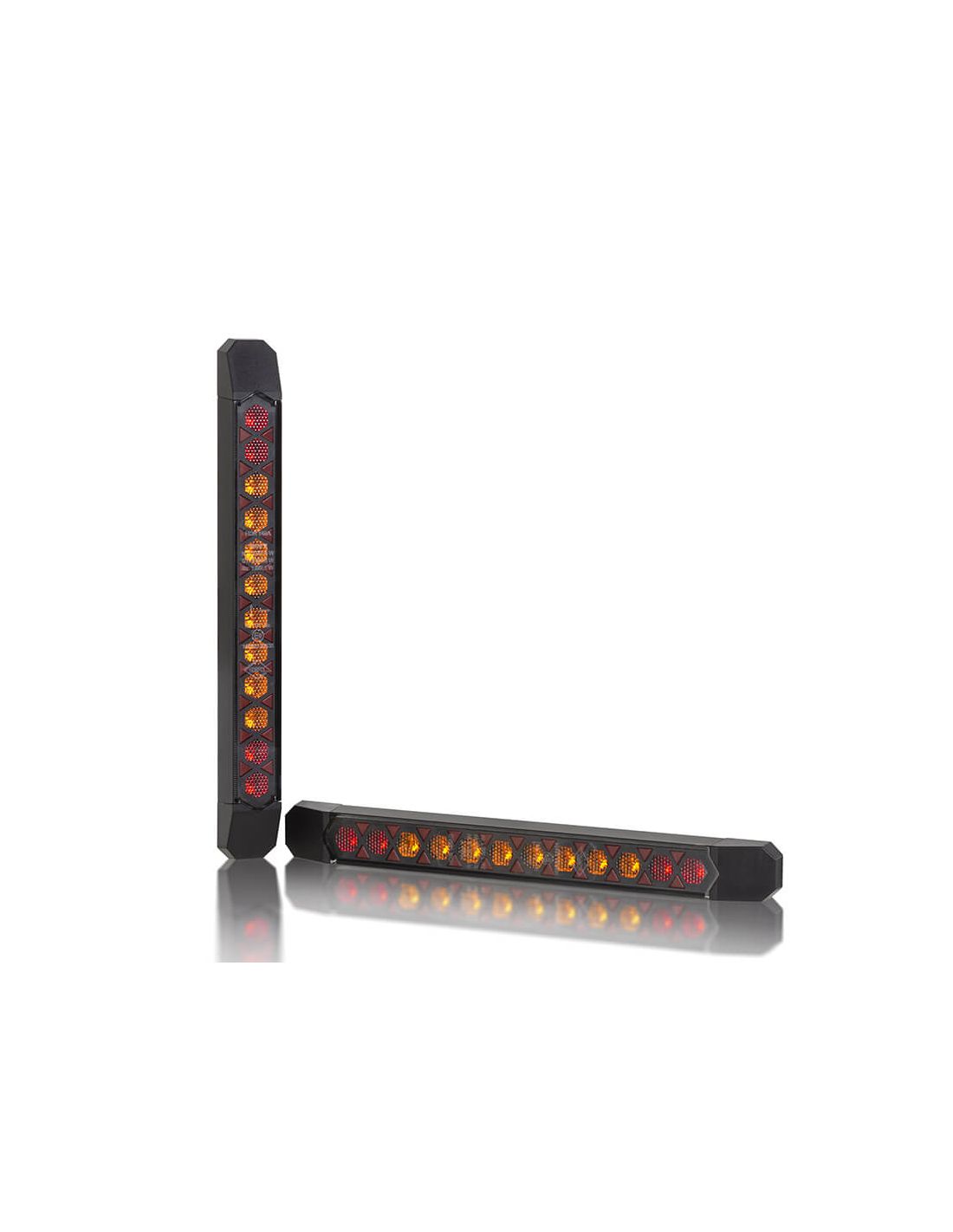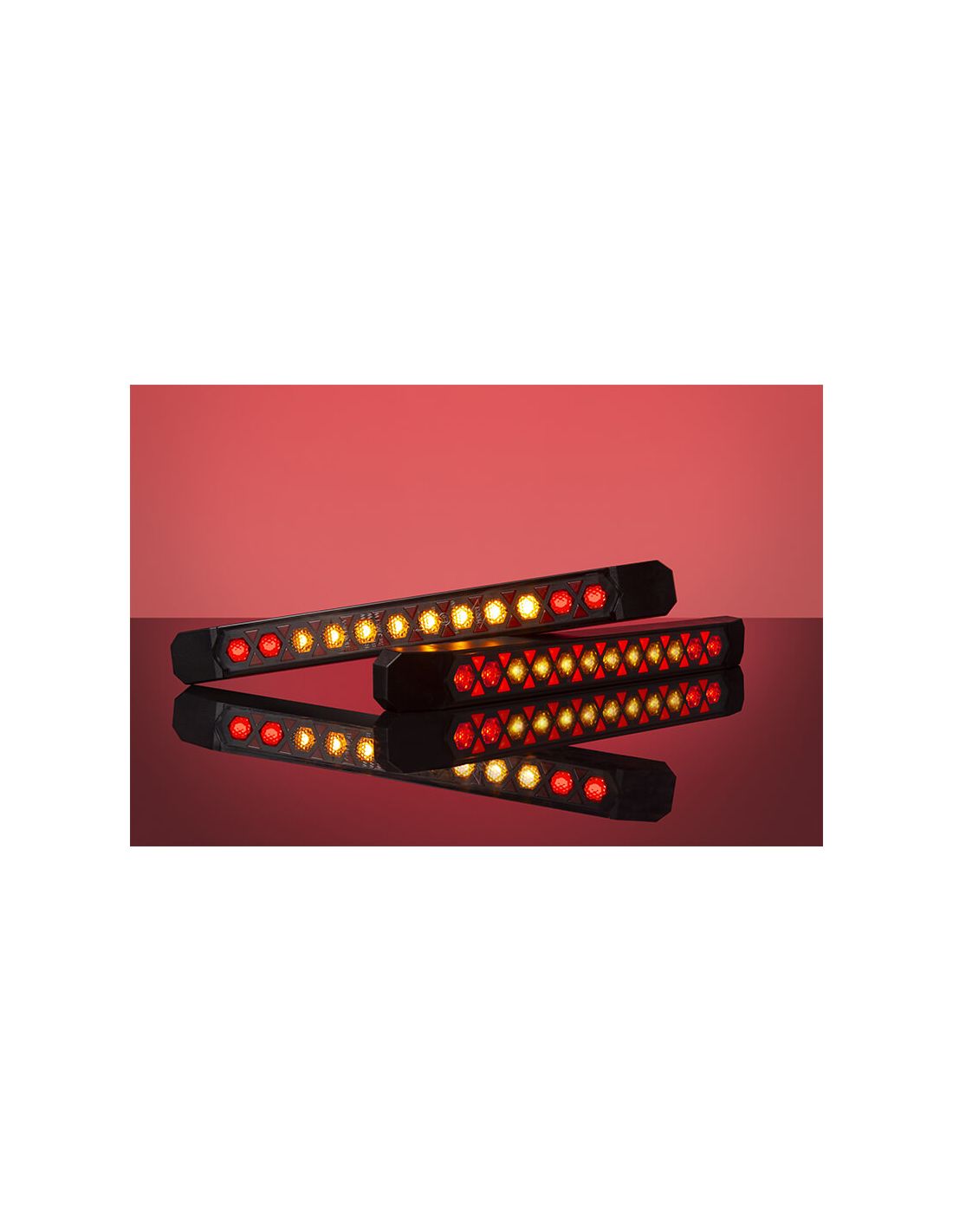 Genehmigte LED-Rückleuchte, entworfen für die obere Montage von Anhängern und Plattformen. Wasserdicht und staubdicht (IP68), bietet maximale Sichtbarkeit und Sicherheit auf der Straße. Dieses Modell ist vollständig tauchfähig und besitzt die Homologationscodes R1, S1 2A. Es ist nicht händisch, und kann symmetrisch auf der linken und rechten Seite, sowie horizontal und vertikal montiert werden.