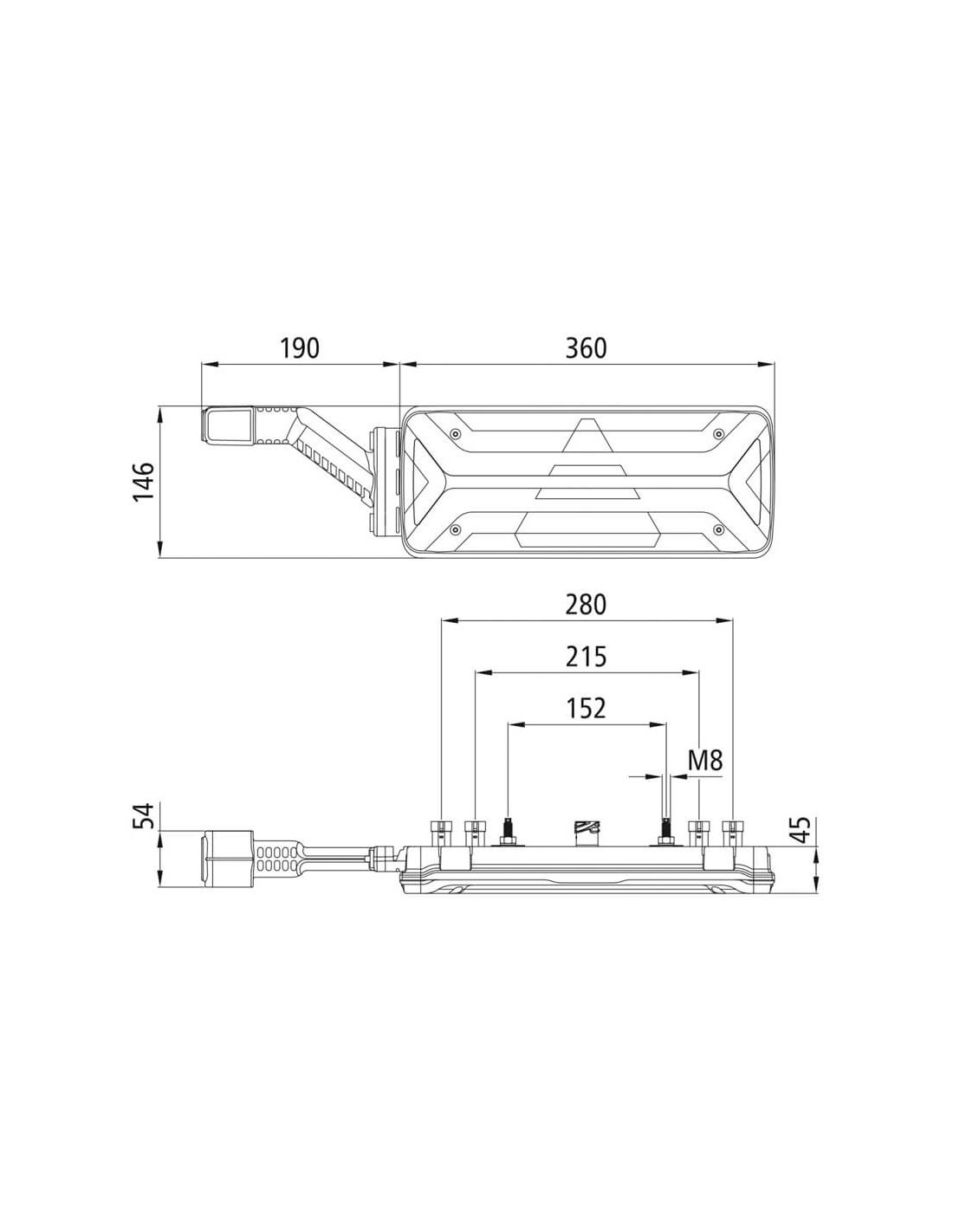 LED Rücklicht mit seitlichem LED Galibo lang geeignet für 12V und 24V mit ASS2 Stecker und Dreieck, reflektierend, dieses LED Rücklicht-Modell hat die ADR und R48 Zulassung., Modell Ecoled II und Galibo LED Superpoint IV.