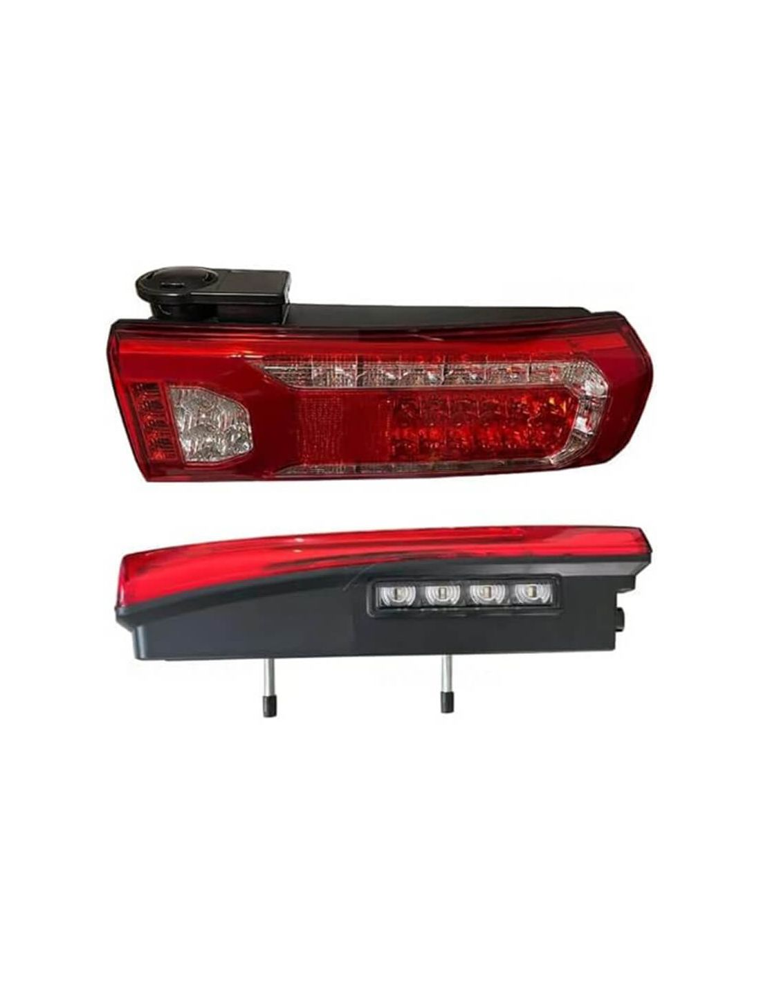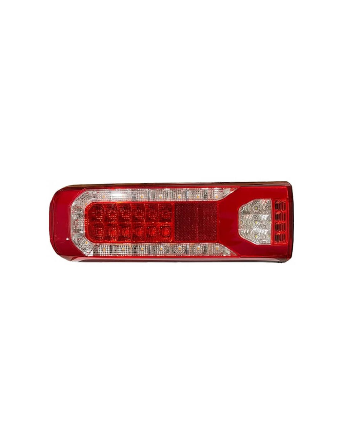 Rückleuchten LED für Mercedes Actros MP4, verfügbar für die linke Seite mit Kennzeichenbeleuchtung (OEM 0035443203) und die rechte Seite mit Rückwarnanlage ohne Kennzeichenbeleuchtung (OEM 0035443403). Ausgestattet mit Seitenstecker und genauen Abmessungen für eine perfekte Anpassung.