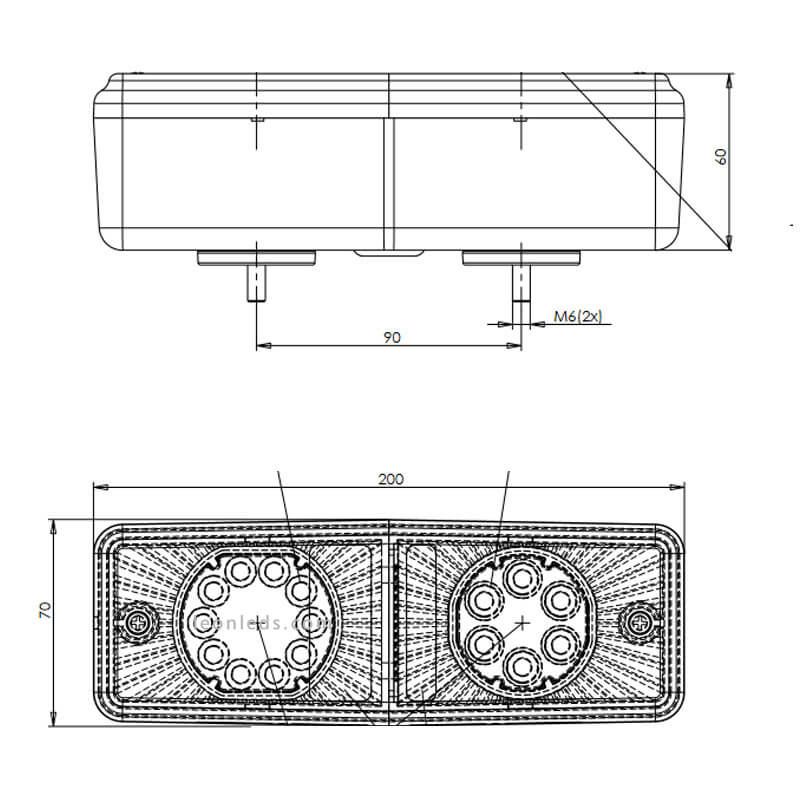 Rücklicht LED mit Funktionen Positionslicht, Bremslicht und Blinker, geeignet für 12V und 24V, hat keine Hand und kann rechts und links sowie horizontal oder vertikal installiert werden. Enthält LED-Technologie und ist homologiert. Perfekt für die Installation in Traktoren und Industrieanlagen und ersetzt das alte Glühbirne Rücklicht. Wird mit 2 Schrauben, die im hinteren Bereich installiert sind, befestigt, um Brüche durch Vibrationen zu vermeiden, werden 2 Gummischeiben mitgeliefert.
