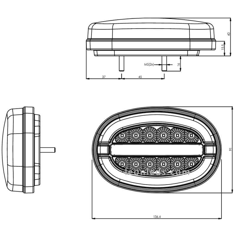 LED-Rücklicht mit Nebel, Positionslicht und Rückwärtsfahrt in ovaler Form der Marke Was, geeignet für 12V und 24V, beinhaltet 2 Meter Kabel für die Installation und wird auf der Oberfläche angebracht. Einheitspreis, hat keine Hand, kann beliebig auf der rechten oder linken Seite installiert werden.