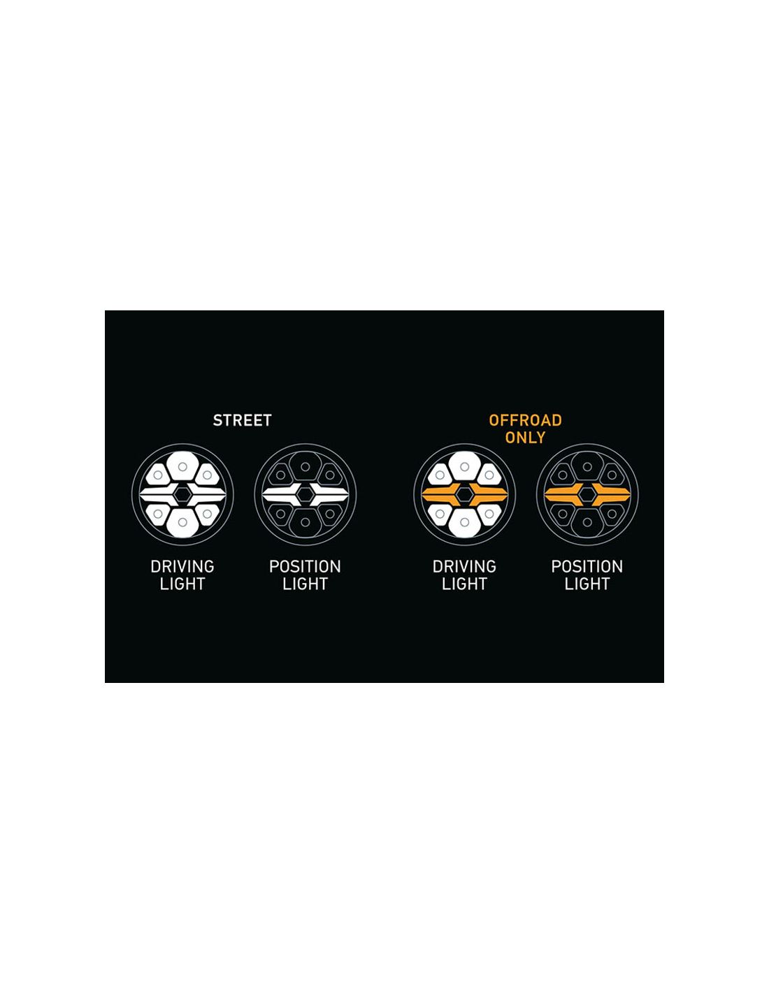 Genehmigter Langstrecken-LED-Scheinwerfer Modell Blade mit einem Durchmesser von 18,1Cm, zur Installation an der Vorderseite von Autos, 4x4, Offroad und Lkw mit einer Leistung von 22W, geeignet für 12V und 24V (1,84A - 0,91A) und 1.680Lm, beinhaltet genehmigtes und bernsteinfarbenes Standlicht (Off-Road), kann über das beiliegende Kabel von 5 Metern angeschlossen werden.