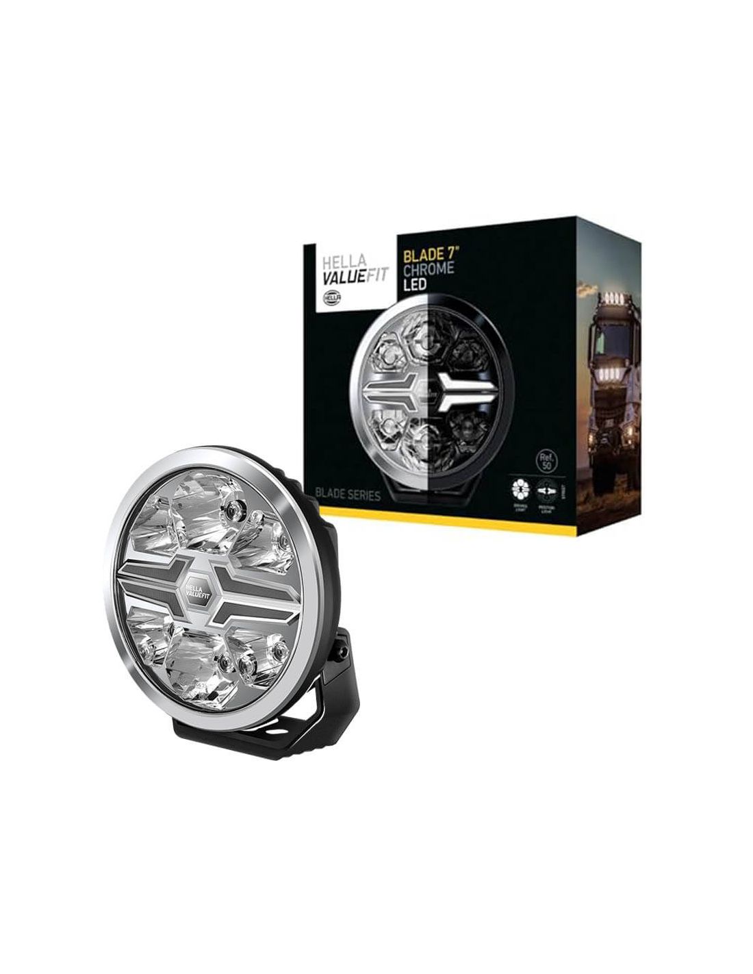 Der neue Blade 7" LED von Hella ist genehmigt, ist vollständig wasserdicht und dieses Modell hat ein verchromtes Finish, erlaubt die Installation eines genehmigten weißen Standlichts und eines nicht genehmigten bernsteinfarbenen Standlichts, für die Installation sind 50 cm Kabel enthalten. Robuster und hochwertiger LED-Hilfsscheinwerfer mit Aluminiumgehäuse und Unterstützung aus Fiberglas (PA66+GF).