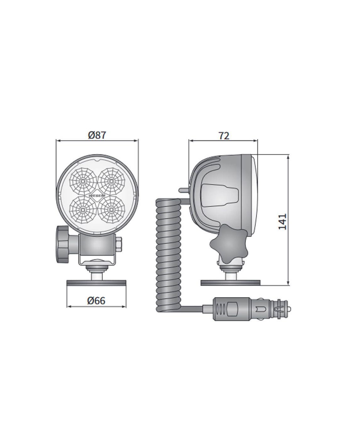 Dieses LED-Arbeitslicht mit Griff ist eine leistungsstarke, robuste und vielseitige Lösung für professionelle Umgebungen. Es wurde entwickelt, um die Arbeit in schlecht beleuchteten Bereichen zu erleichtern und verfügt über ein praktisches 8 Meter Spiralkabel mit einem Zigarettenanzünderanschluss, sodass es sofort in Fahrzeugen und Maschinen mit 12V oder 24V verwendet werden kann.