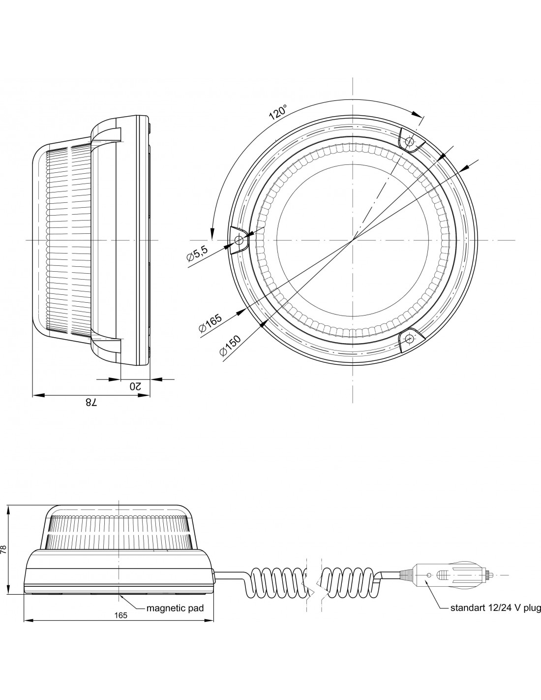 Magnetisches Mehrtensions-LED-Rundumleuchte Modell FT100 MAG M30 mit 3 Metern Spiralkabel und Zigarettenanzünder-Stecker, gültig für 12V und 24V. Ein LED-Rundumleuchte, das bis zu 250 km/h Windlast standhält, stoßfest und mit IP68 Wasser- und Staubschutzklasse. Wenn du ein LED-Rundumleuchte mit bester Marktqualität suchst, ist dieses FT-100 perfekt für Spezialfahrzeuge dank seiner Robustheit und Schlagfestigkeit.
