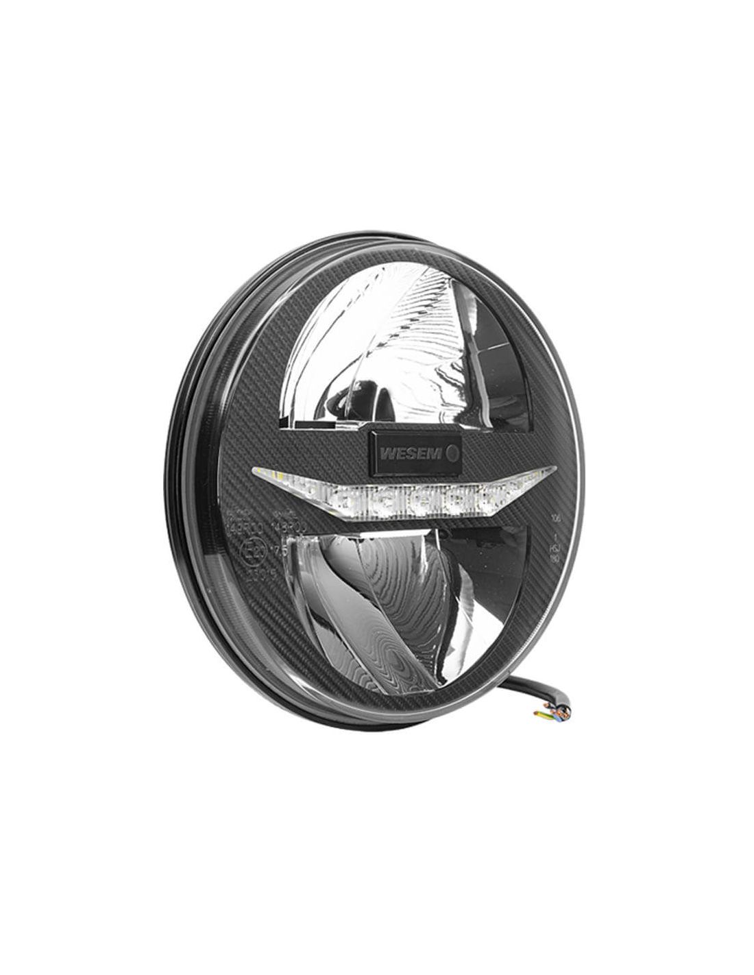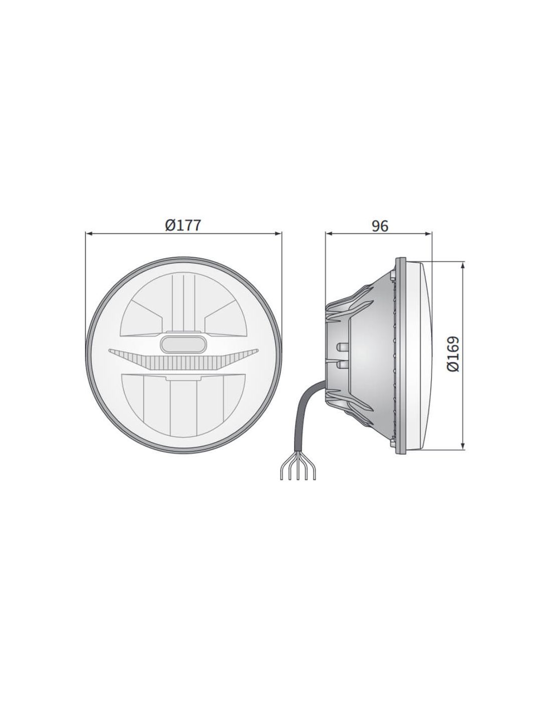 Zugelassener Full LED-Scheinwerfer mit 7" für die Installation im Unterbau an der Vorderseite eines Fahrzeugs, das bereits einen 7-Zoll-Scheinwerfer hat, ist geeignet für 12V und 24V, umfasst 4 Funktionen: Positionslicht, Abblendlicht, Fernlicht und tagsüber DRL, Full LED-Scheinwerfer-Modell. Für die Verbindung sind 0,3 Meter Kabel enthalten.