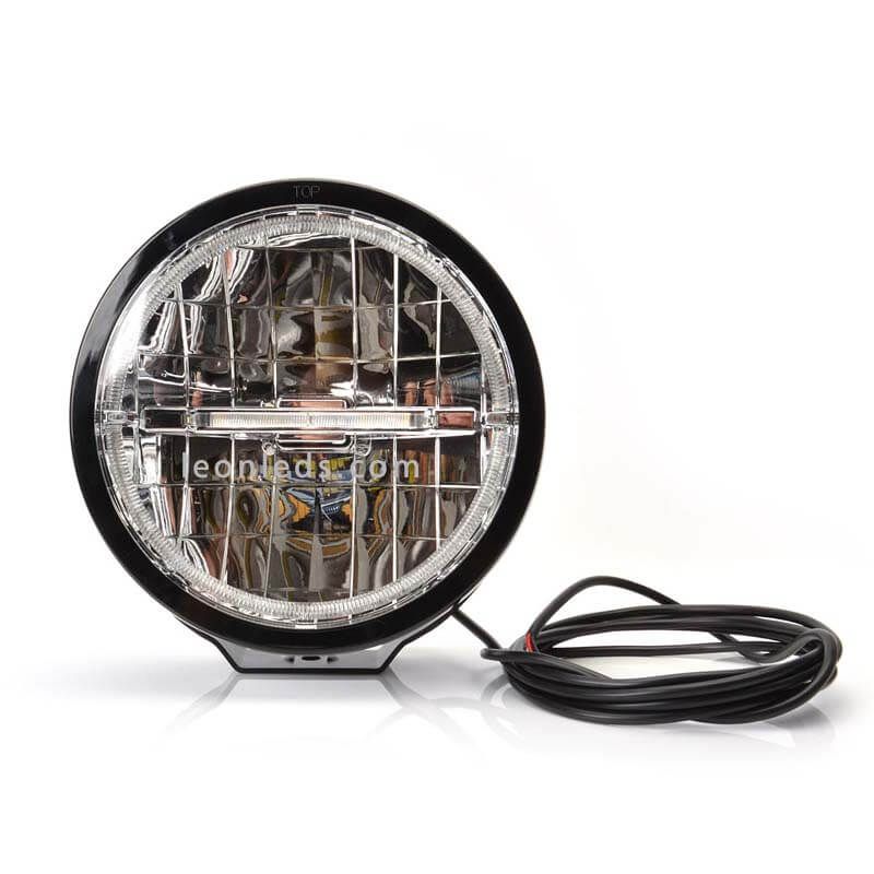 Runder LED-Frontscheinwerfer mit Zulassung mit 3 Metern Kabel von 3X0.75mm2, geeignet für 12V und 24V, ideal für die Montage an der Vorderseite unseres Lkw oder unseres Geländewagens oder 4x4. Modell mit 30 Lichtpunkten für seine Zulassung.