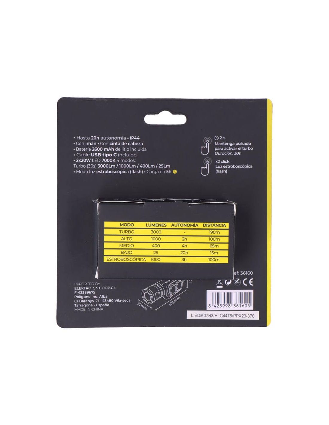 Die LED-Stirnlampe mit 3.000 Lumen ist ideal für diejenigen, die eine starke und freihändige Beleuchtung für ihre Aktivitäten benötigen. Mit einer Leistung von 2x20W und einer Lichttemperatur von 7000K bietet diese Lampe eine klare und effiziente Beleuchtung in jeder Situation.
