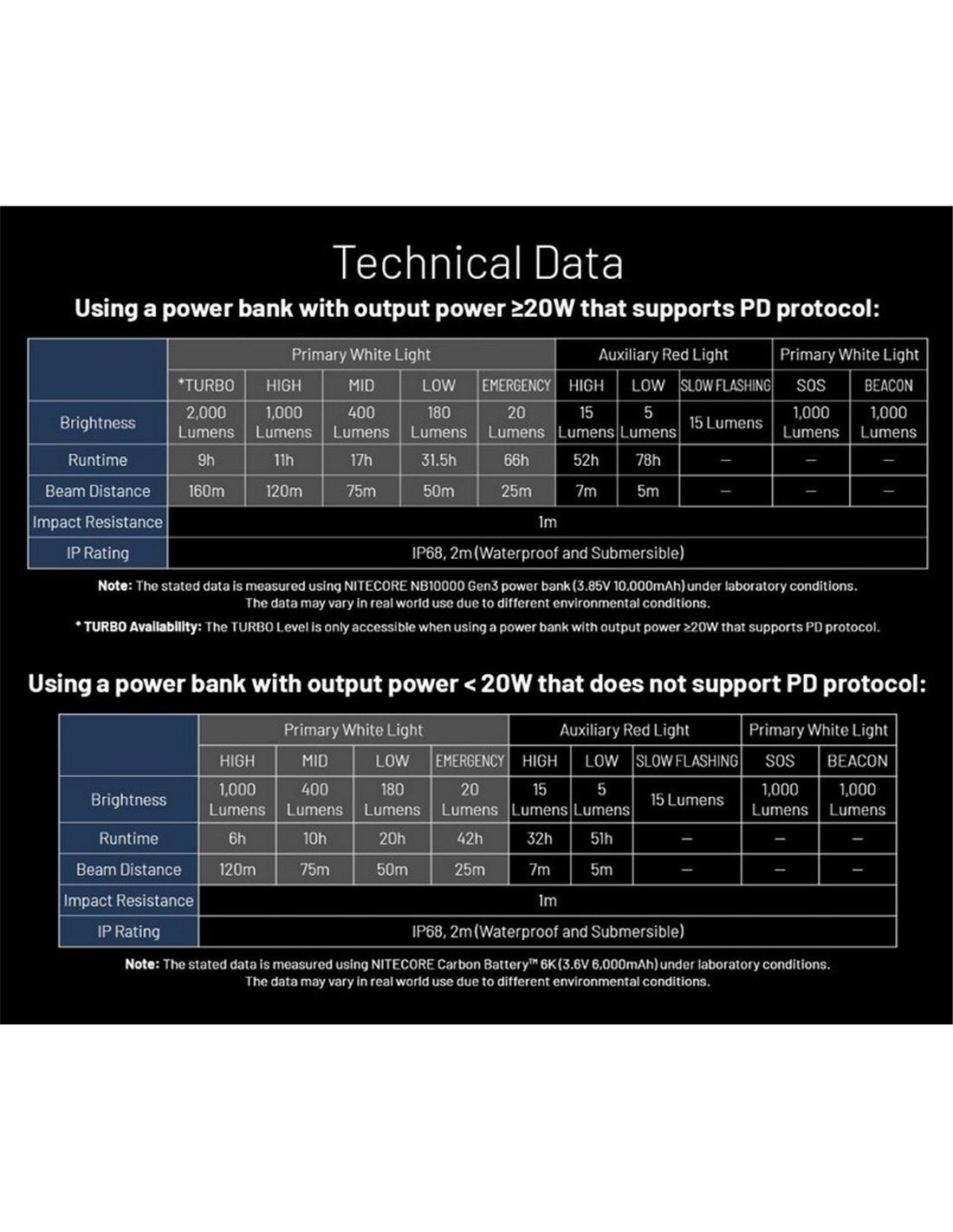 - Weiß- und Rotlichtmodi: Beinhaltet ein primäres weißes Licht (6.000K) und ein rotes Hilfslicht, das sich ideal an verschiedene Lichtverhältnisse anpassen lässt.