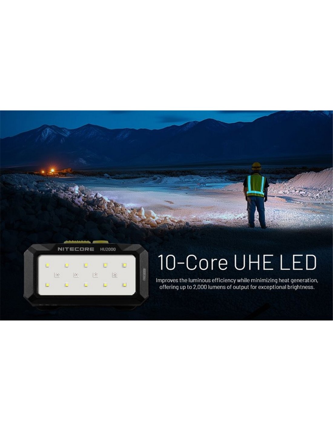 LED Stirnlampe HU2000 sehr leistungsstark mit 2.000 Lumen, einer Reichweite von 160 Metern und IP68-Zertifizierung. Entwickelt für Such- und Rettungseinsätze, industrielle Wartung und den Einsatz in Notfällen. Enthält Modi für weißes Licht, rotes Licht und besondere Modi, mit extremer Widerstandsfähigkeit und einer Autonomie von 78 Stunden.