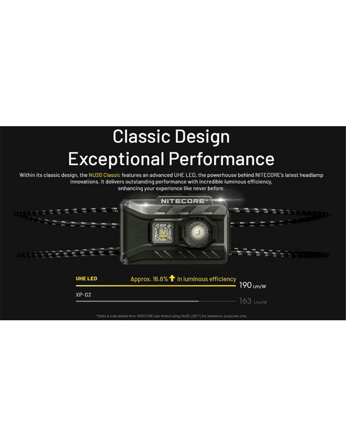 Die Stirnlampe NU20 Classic von NITECORE bietet eine kompakte und effiziente Lösung für Outdoor-Aktivitäten, nächtliche Trainings und Arbeiten im Freien. Mit 360 Lumen Leistung und einer Reichweite von 109 Metern ist sie perfekt geeignet, um jede Umgebung zu beleuchten.