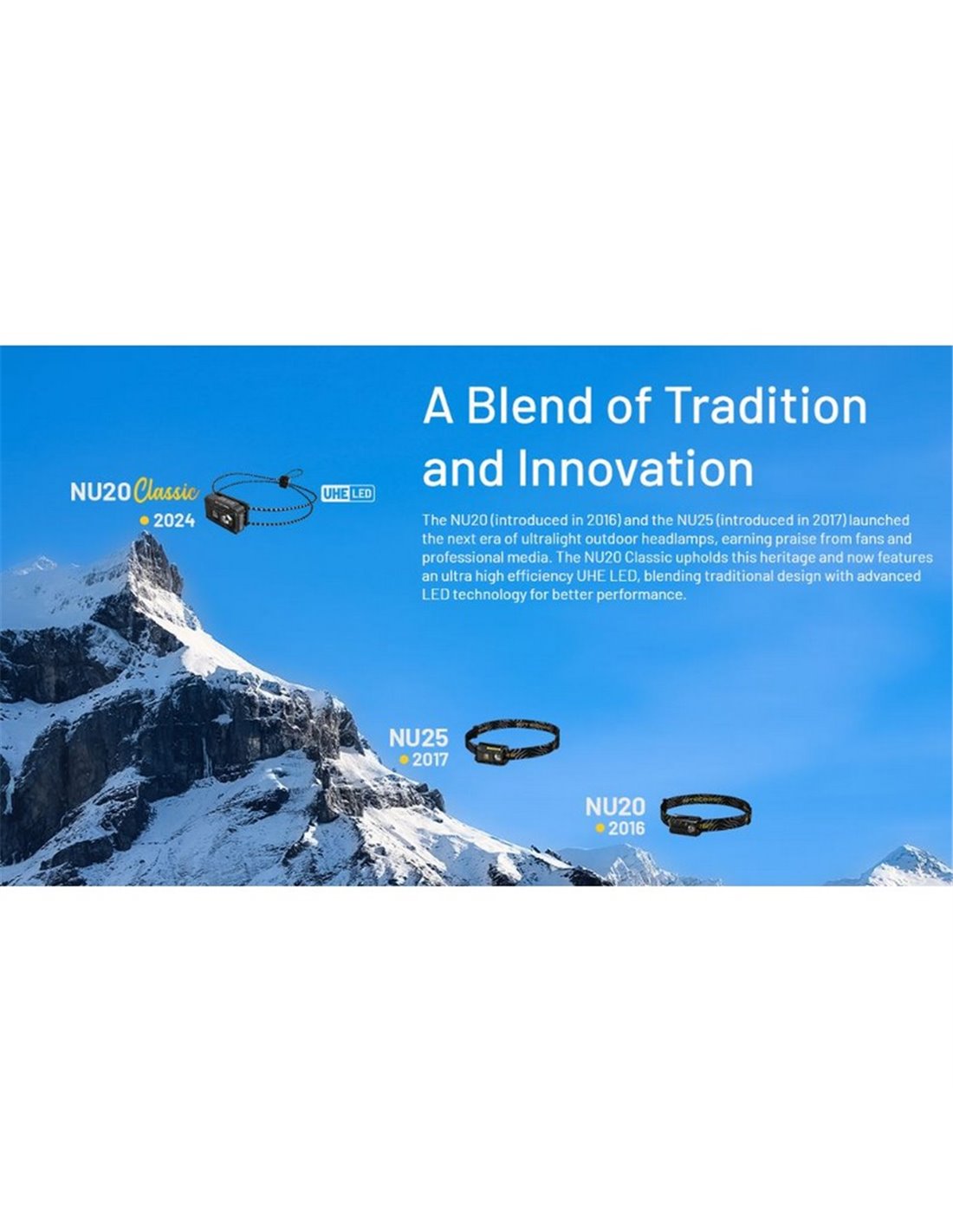 Die NU20 Classic ist eine leichte und vielseitige Stirnlampe, die für Leistung und Zuverlässigkeit in einem kompakten Design konzipiert wurde. Sie ist perfekt geeignet für Trailrunning, Klettern, nächtliche Ausflüge und Arbeiten im Freien.
