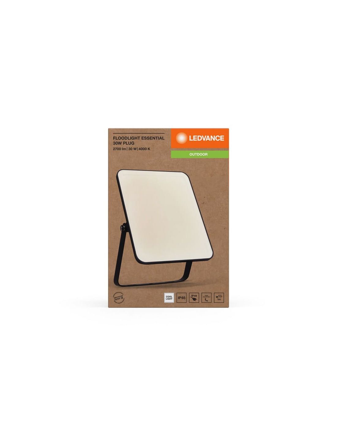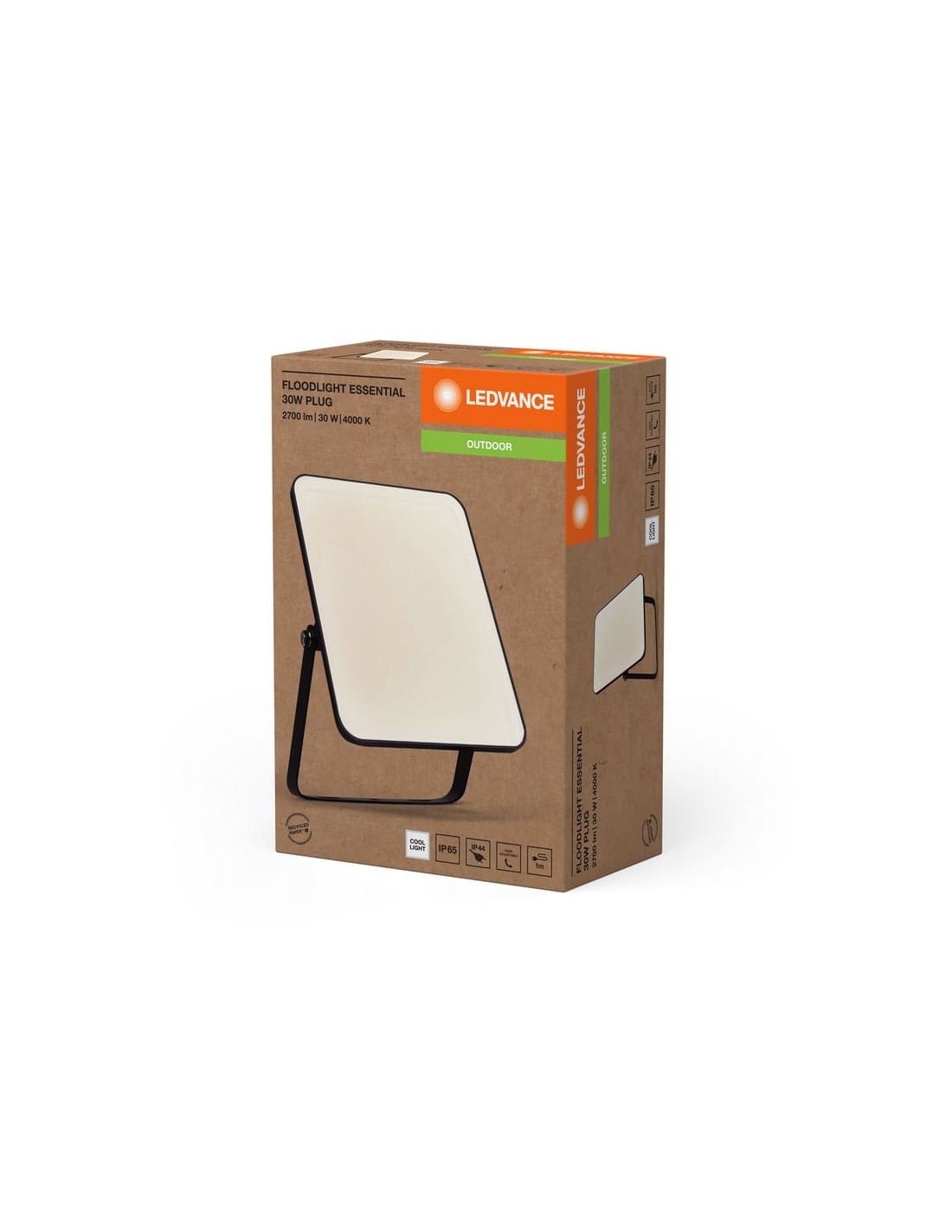 Der 30W schwarze LED-Scheinwerfer der ESSENTIAL-Serie bietet ein intensives Licht in kaltem Weiß von 4000K und 2700lm. Mit IP65-Schutz, satinierter weißer Diffusor und verstellbarem Lichtwinkel ist er perfekt für Außenbereiche. Inklusive 1 m Verbindungskabel für eine einfache Installation.