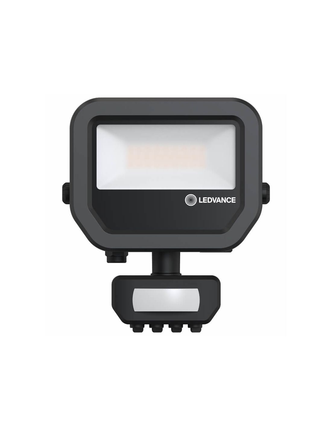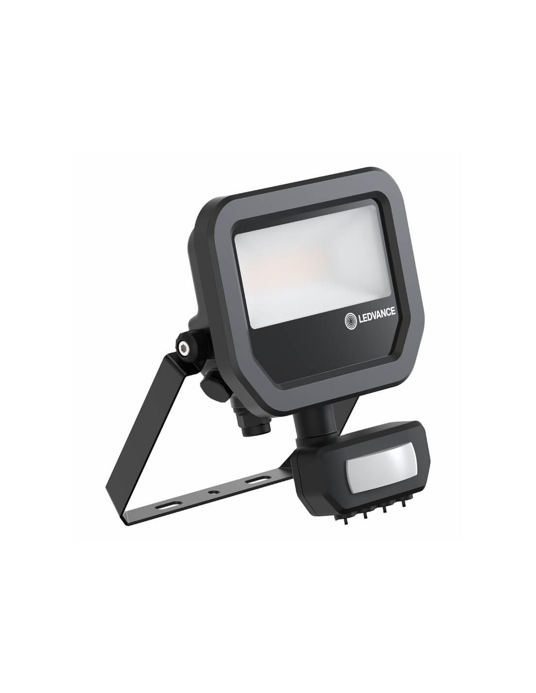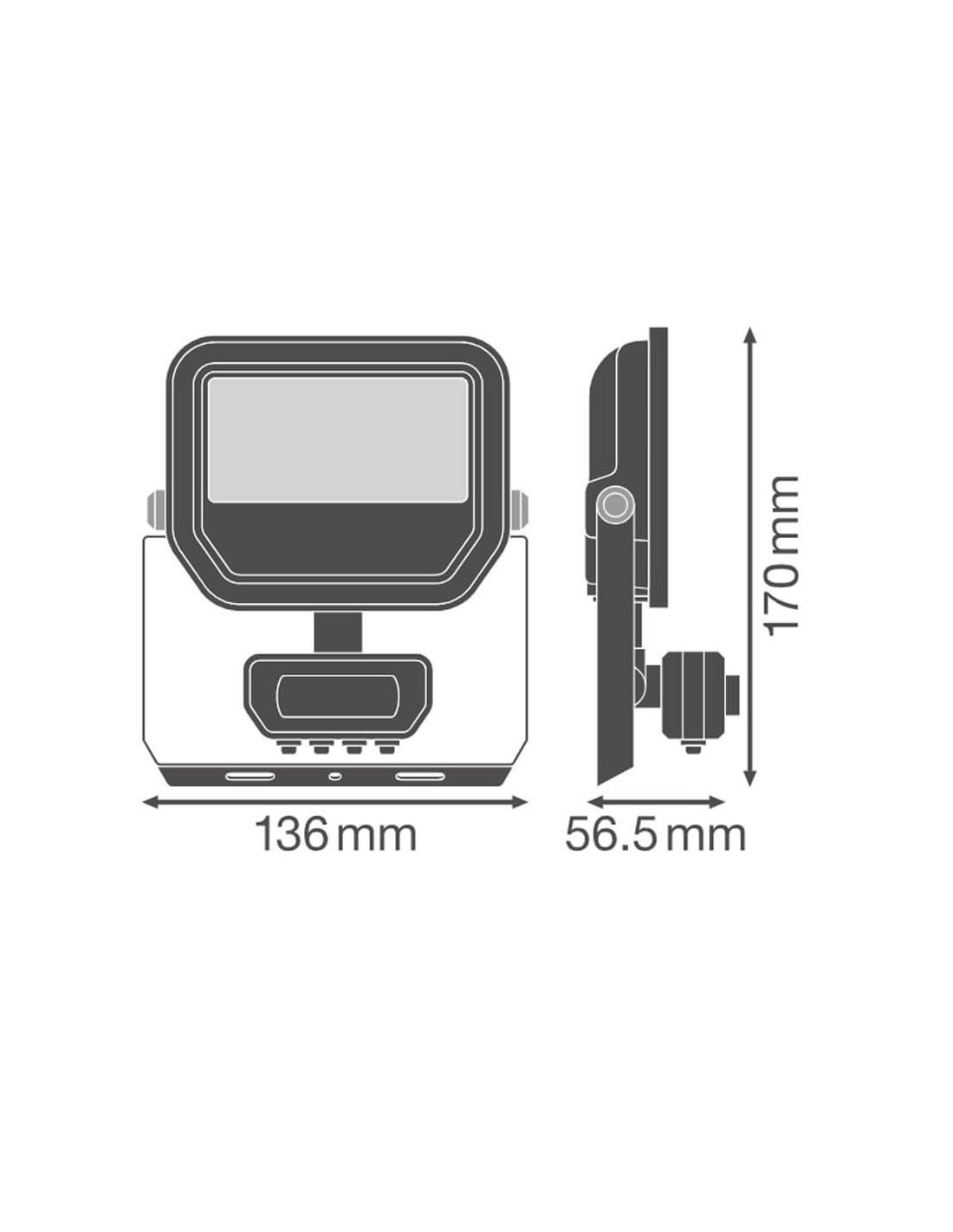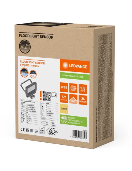 Schwarzer LED-Strahler mit 8W für den Außenbereich mit programmierbarem PIR-Sensor und weißem Licht, erhältlich in 3000K (warm) oder 4000K (neutral). Bietet 1100 Lumen und 780Lm mit Multi-Select, einem Abstrahlwinkel von 100° x 100° und ist aus langlebigen Materialien mit IP65-Schutz gefertigt. Ideal für Gärten, Fassaden und Parkplatzbereiche.