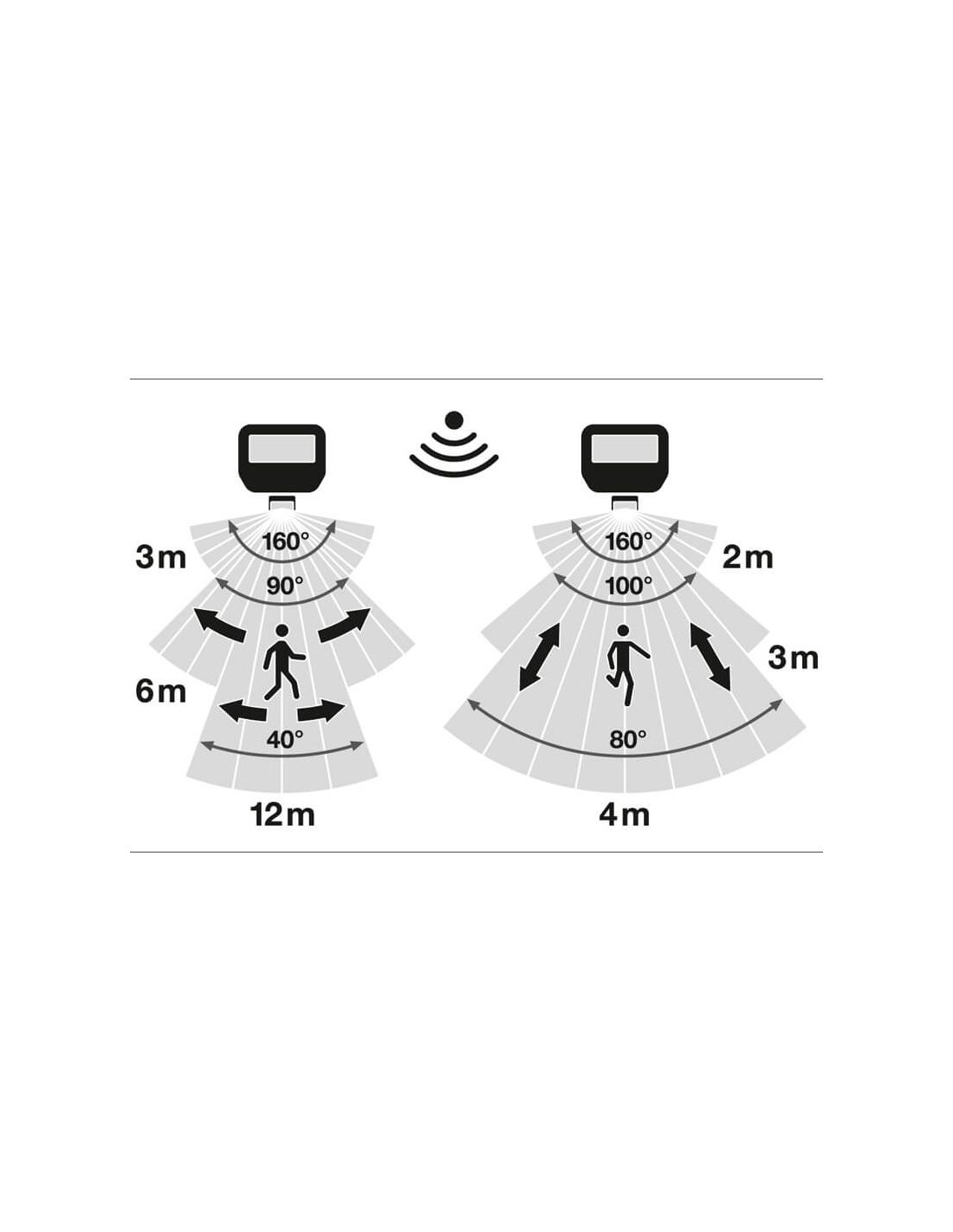 - PIR-Sensor: Einstellbarer Bereich von 2 bis 12 Metern mit einem Erfassungswinkel von 40° bis 160°.