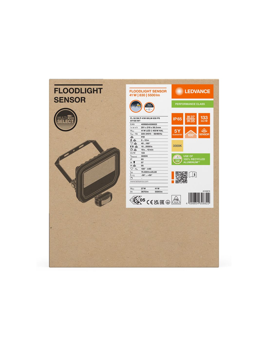 LED-Strahler 41W weiß mit Bewegungssensor - FL 50 | Optionen für warmes und natürliches Licht