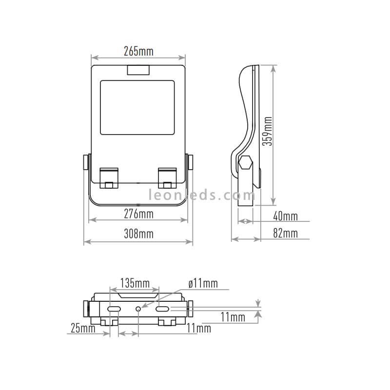 LED-Strahler für den Außenbereich mit einer Leistung von 40W Modell CFL von Cree, einer Lichtintensität von 5.400Lm, einem natürlichen Lichtton von 4000K, sowie einem Schutzgrad gegen Feuchtigkeit und Staub von IP66 und gegen Stöße IK08, enthält einen Überspannungsschutz von 10Kv.