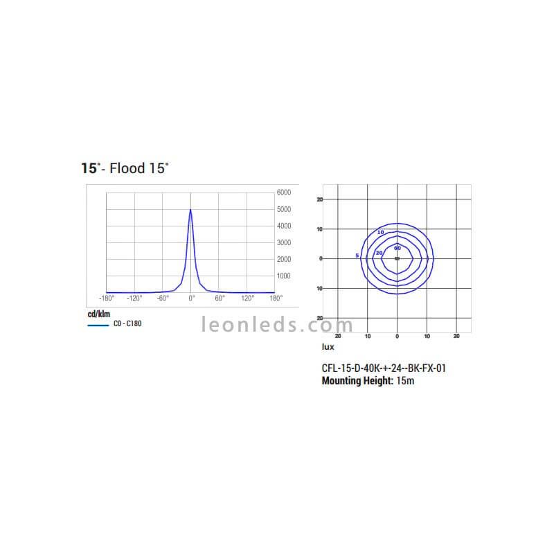 2.- Flood 30º: Doppeltes Lichtfeld im Vergleich zur 15º-Linse, ein sehr nützlicher fokussierter Lichtstrahl in vielen Beleuchtungssituationen, im Englischen bedeutet "Flood" Lichtüberschwemmung.