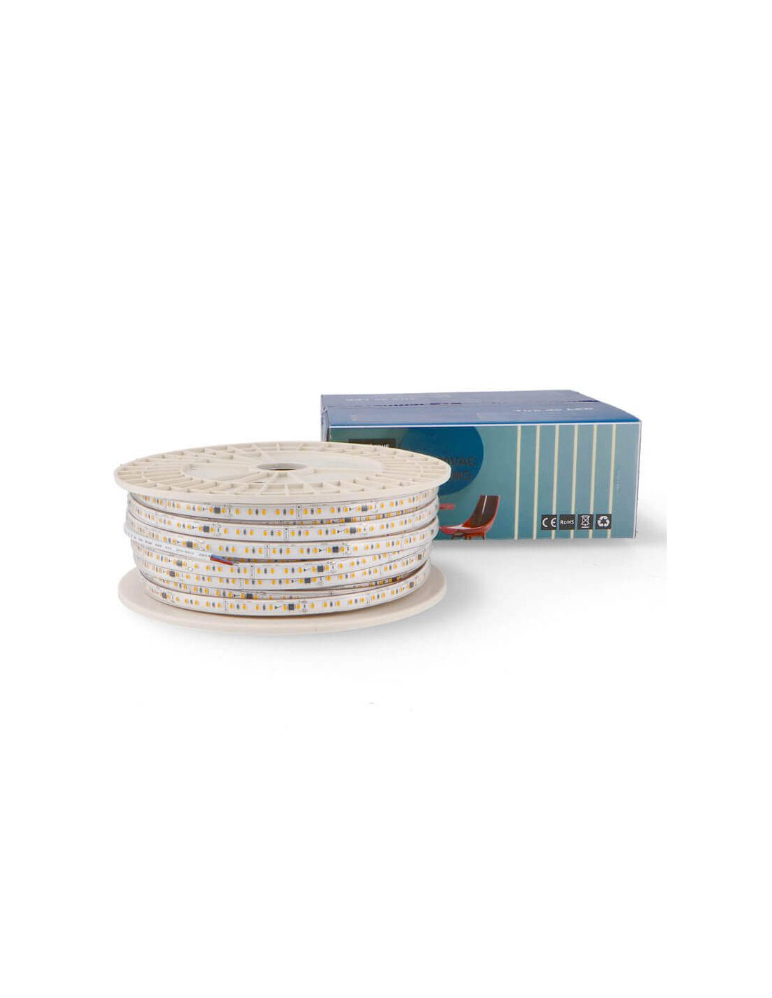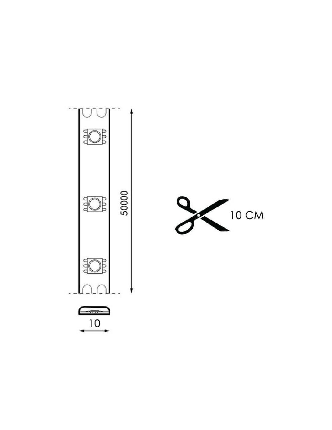 LED-Streifen 220V Schnitt alle 10 cm mit einer Leistung von 17W pro Meter und 3M Kleber, eine Lichtintensität von 1.500 Lumens pro Meter und einen Schutzgrad gegen Wasser und Staub von IP65. Dieser LED-Streifen kann in jedes Aluminiumprofil integriert werden (Breite des Streifens 10mm und Höhe 3mm) und kann alle 10 cm geschnitten werden. Er ist verfügbar in 3 Lichttönen, einschließend Stecker und 1,5 Meter Kabel.