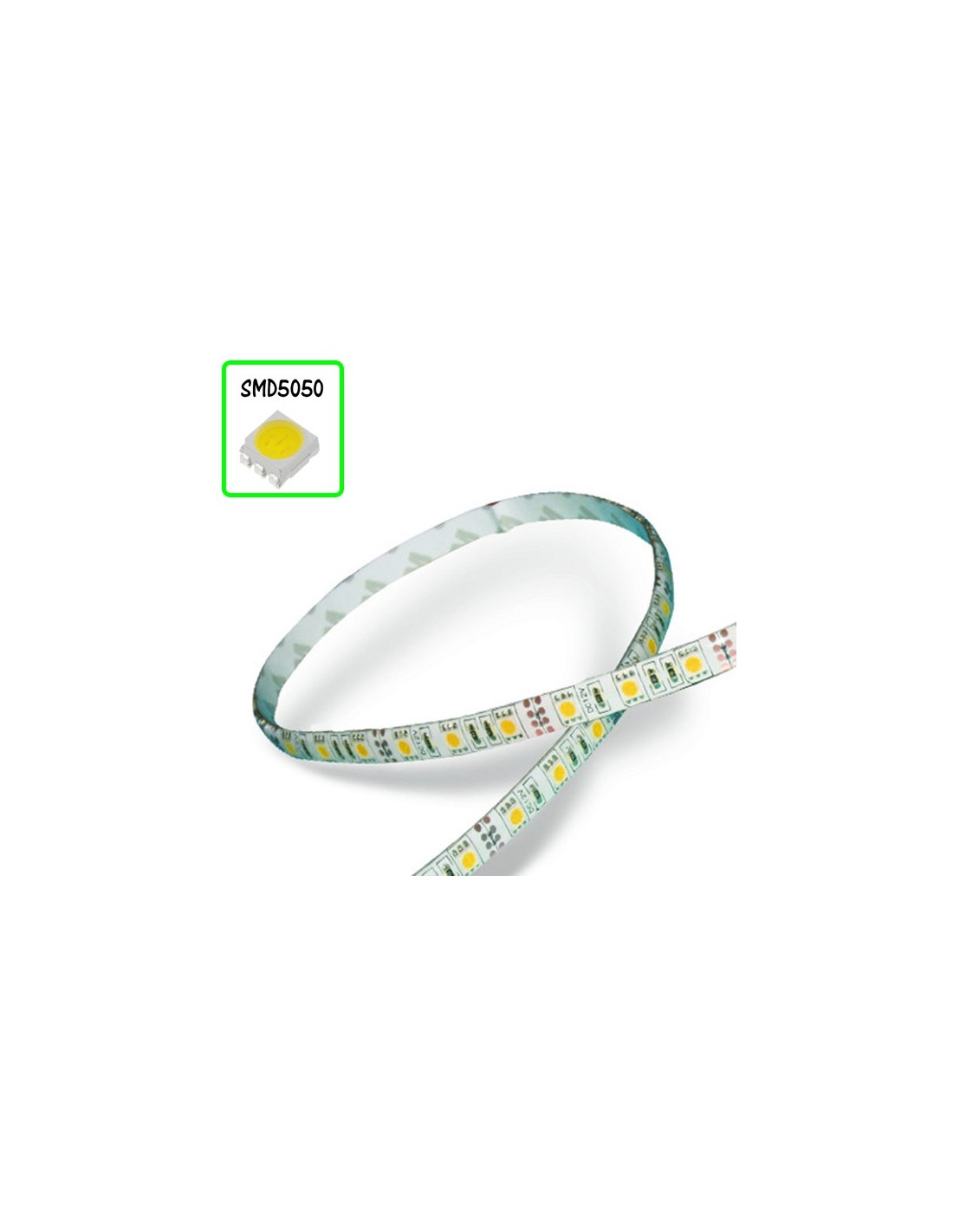 12V LED-Streifen mit 5050 Chip, eine Leistung von 4.8W/m, mit einem Schutz von IP20, perfekt für den Innenbereich.