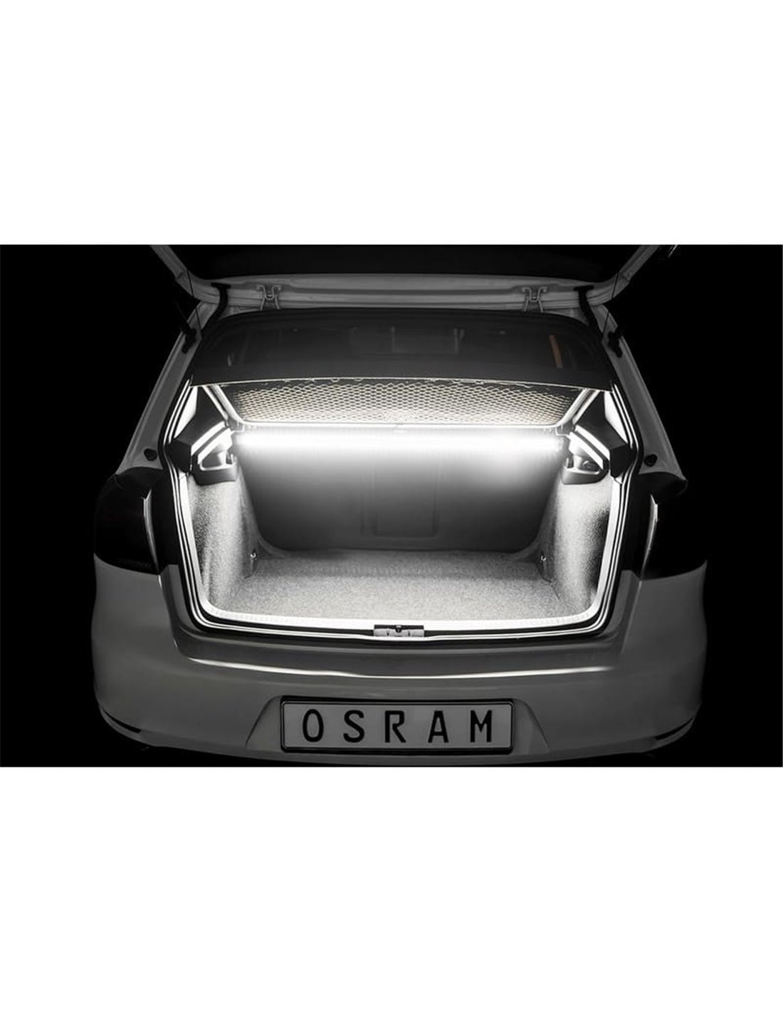Erreiche eine gleichmäßige und moderne Innenbeleuchtung mit dem LEDambient® INTERIOR STRIP KIT von OSRAM. Zwei flexible und selbstklebende LED-Streifen von jeweils 1,5 m (90 LEDs pro Streifen) bieten ein hochwertiges 4500 K weißes Licht mit 900 lm pro Streifen, perfekt für Decke, Fußräume, Kofferraum oder Laderaum.