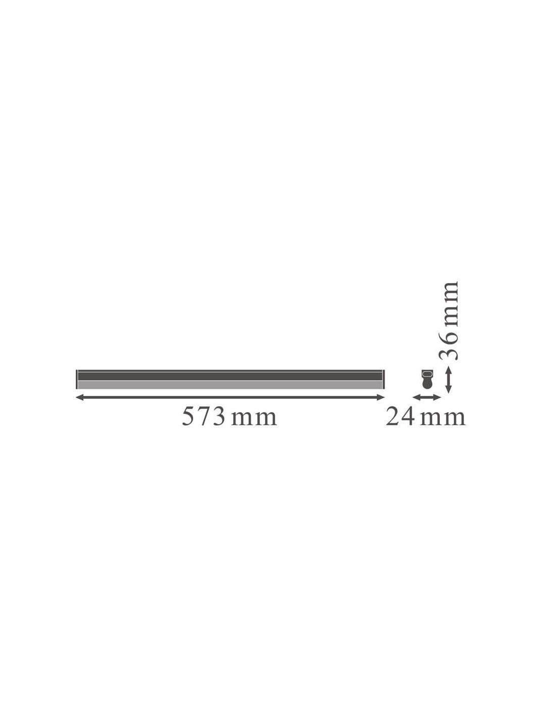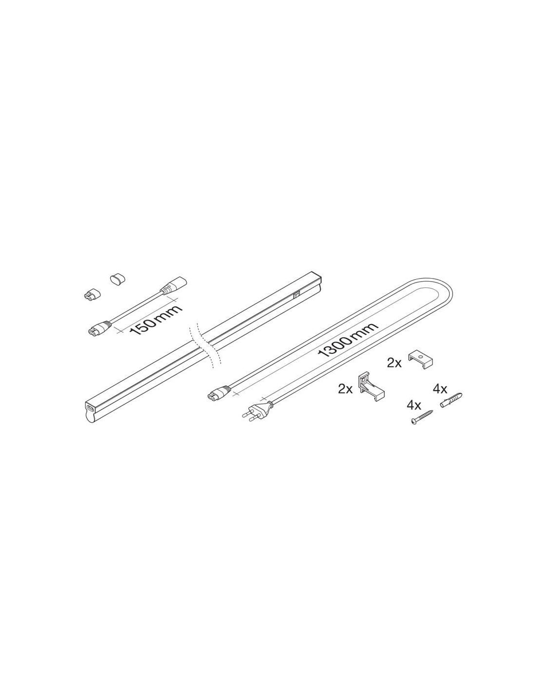LED-T5-Leiste Compact Linear 60 cm und 8W mit integriertem Schalter, enthält alle Zubehörteile für Installation und Halterung. Perfekt für die Installation unter Möbeln.