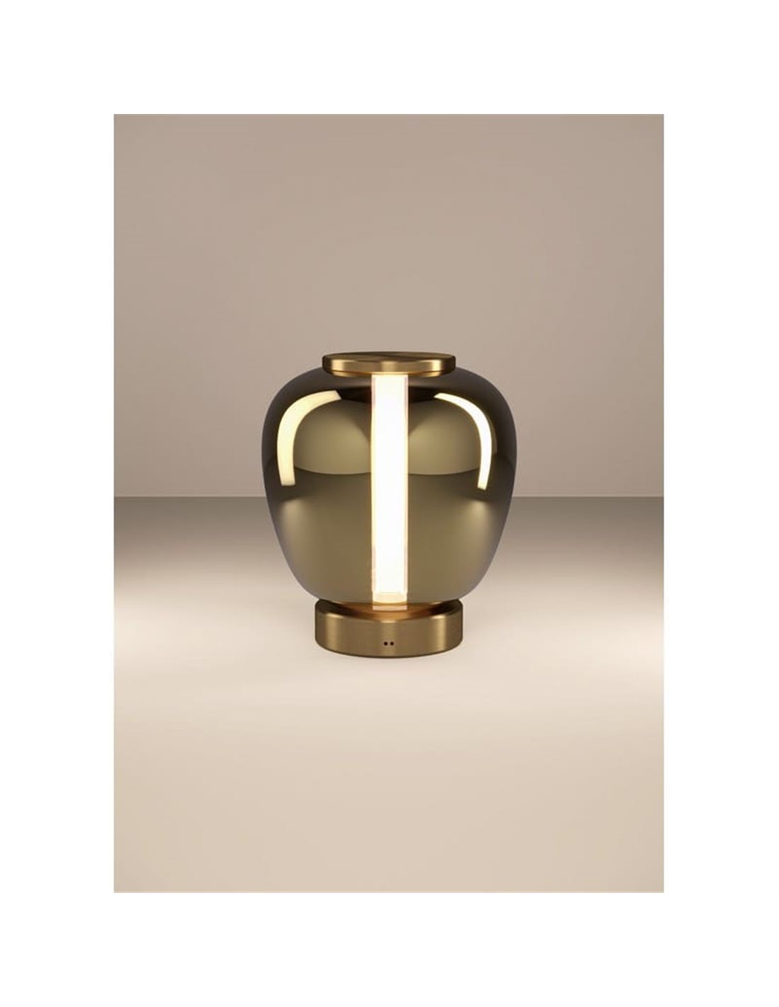 FRUITERA in der Tischversion ist perfekt, um die Einrichtung mit einem warmem Umgebungslicht und einem Premium-Design zu vervollständigen. Ihr Dampfglas in gold/braunem Ton verleiht eine elegante Optik, ideal für Nachttische, Anrichten oder Empfangsräume.