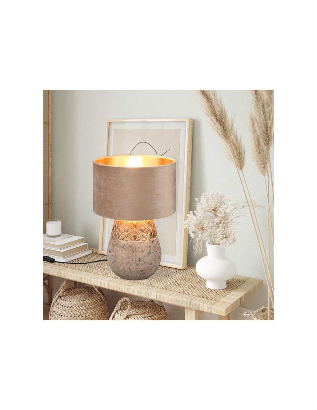 Die Kiran Tischlampe benötigt eine E27-Glühbirne, die im Lieferumfang nicht enthalten ist, und bietet uns eine effektive und gemütliche Sekundärbeleuchtung.