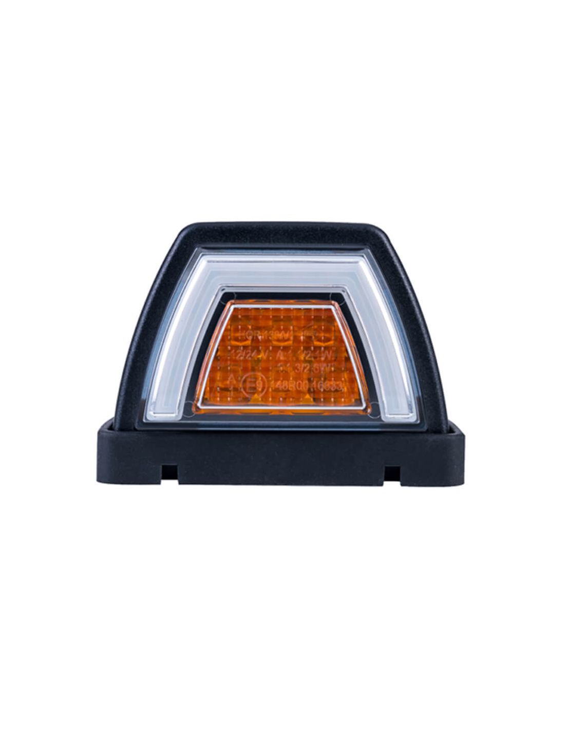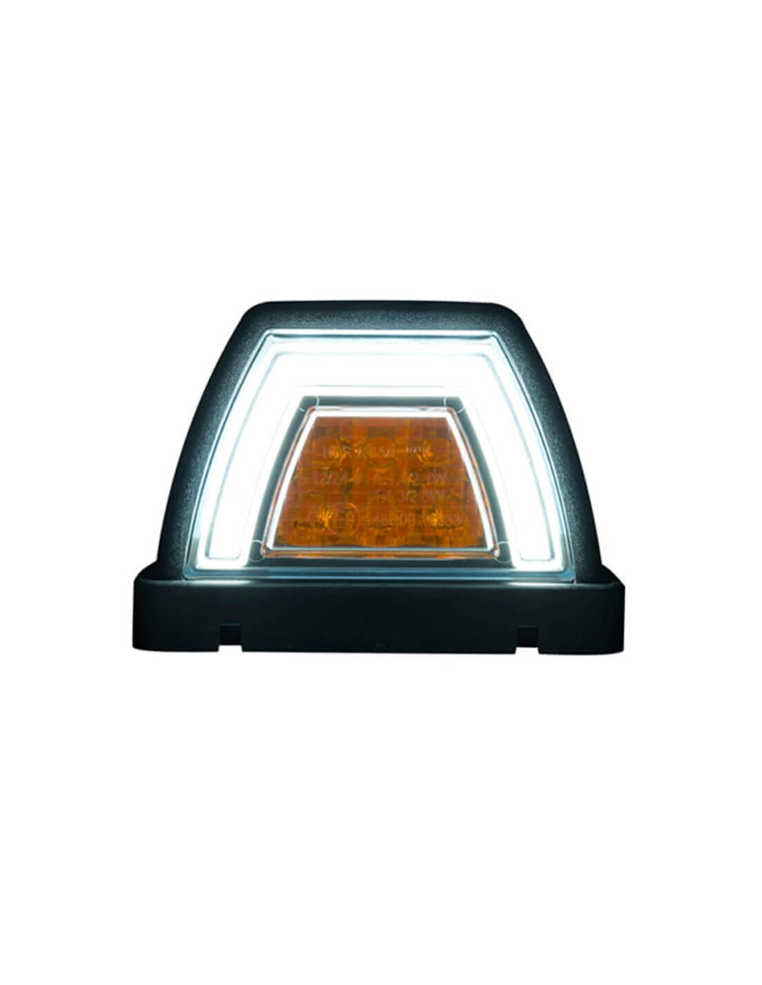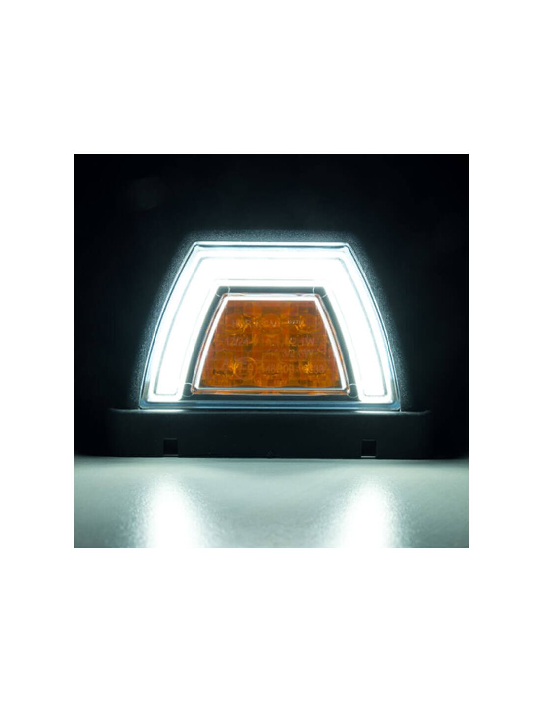 LED-Vordere Leuchte LZD 3088, genehmigt A 1, mit Doppelfunktion: NEON-weißes Positionslicht und gelbes Richtungslampe. Symmetrisches Design für die Montage auf beiden Seiten des Fahrzeugs. Kompatibel mit 12V/24V, IP68, wasserdicht und staubdicht, mit geringem Energieverbrauch.