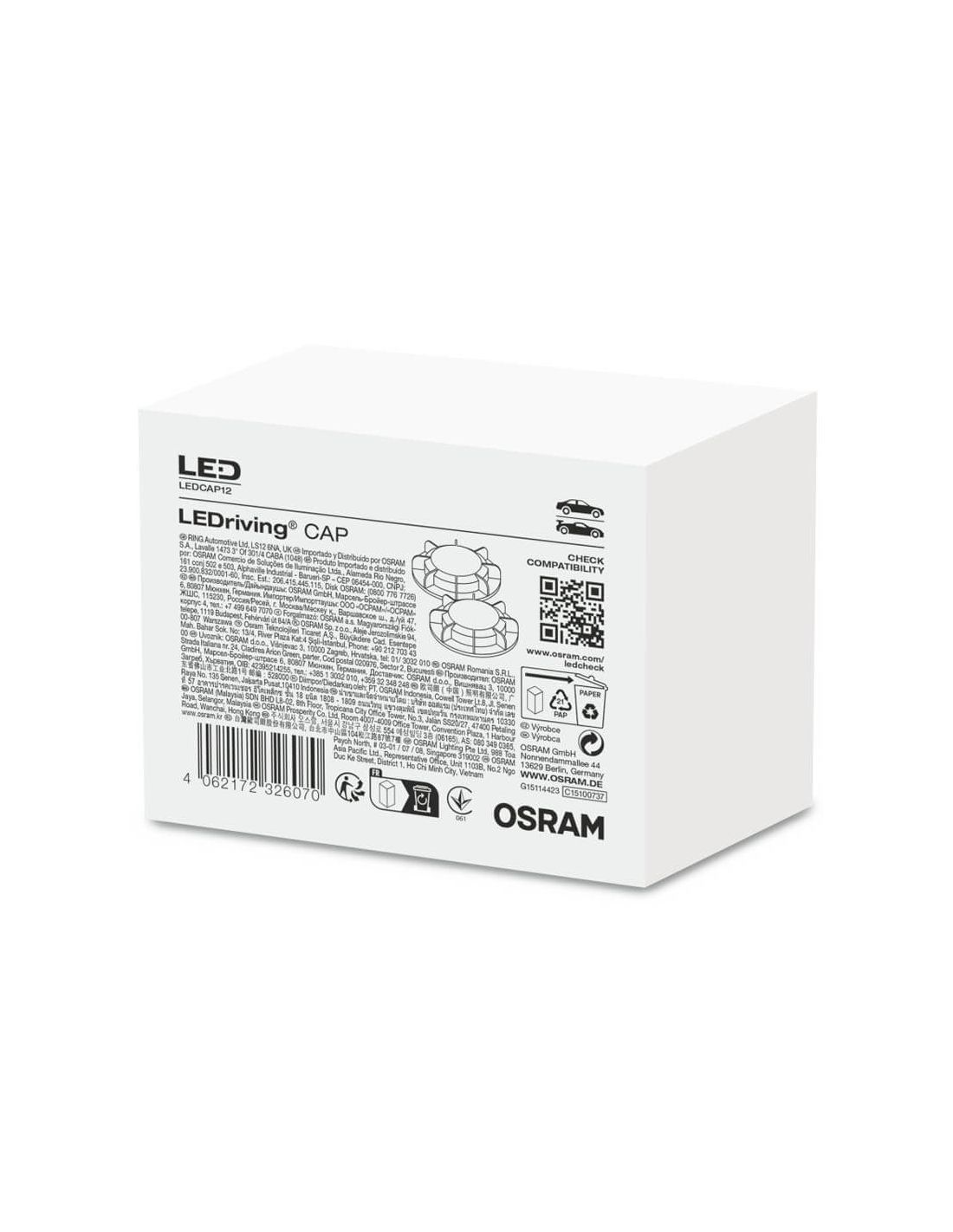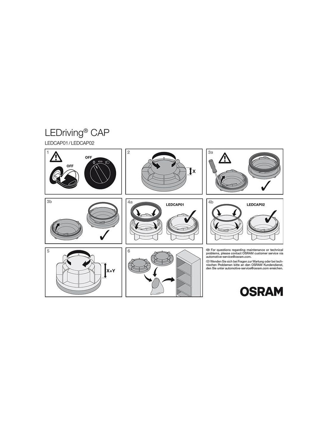 Verschlusskappe der Marke Osram zum Austausch der Originalkappe in den Fahrzeugen, die in unseren Bildern und auf der Osram-Website angezeigt werden, um sie zusammen mit den Osram H7 Glühbirnen zu installieren, überprüfen Sie bitte vorher, dass dies die richtige Referenz, LEDCAP12, ist.