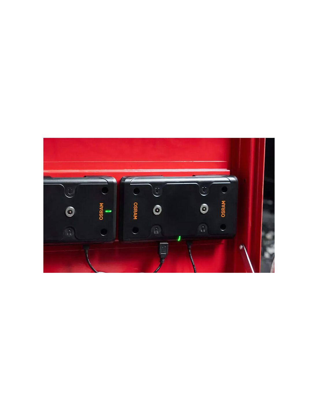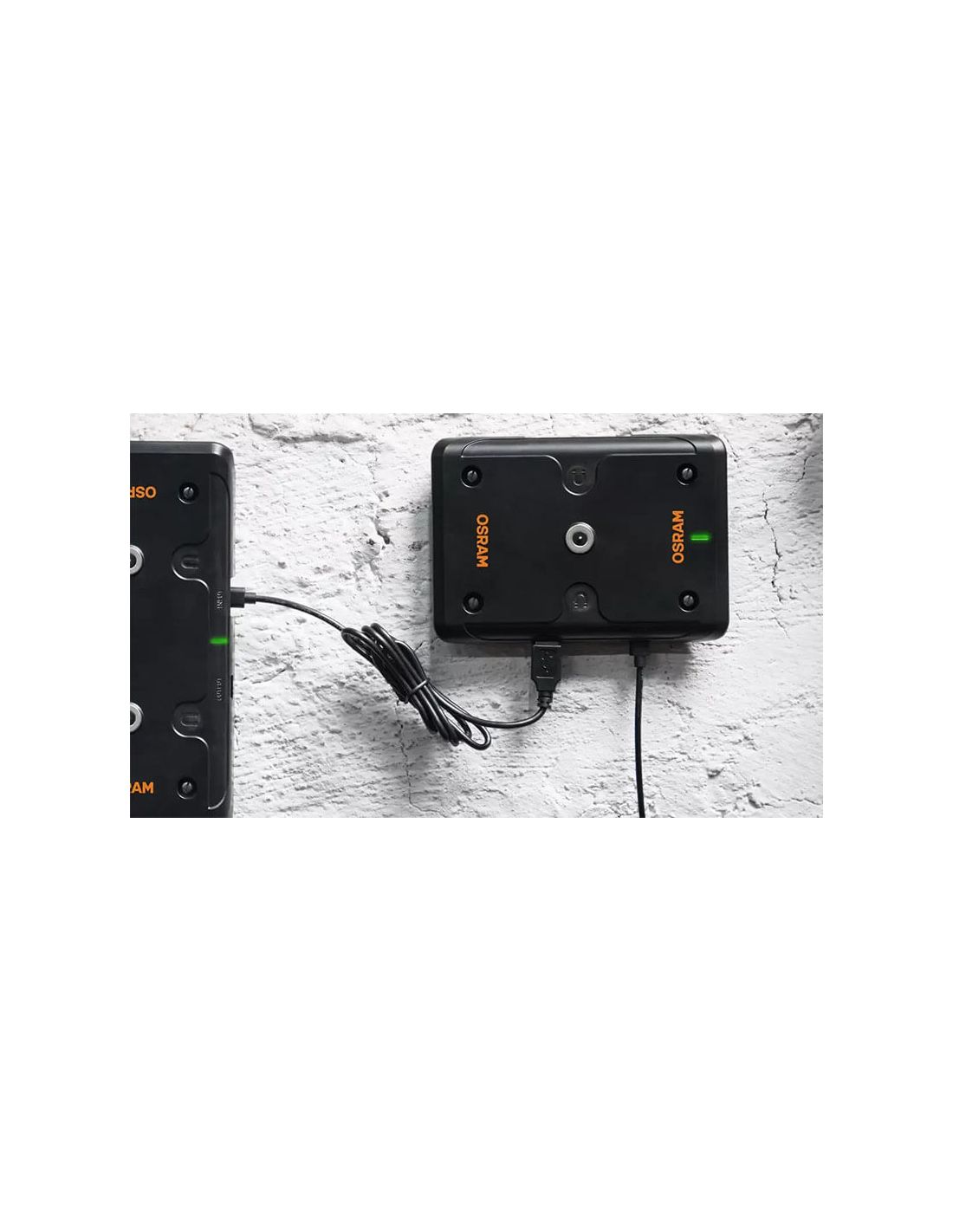 - Stromversorgung: Netzadapter und Ladepad (Osram)