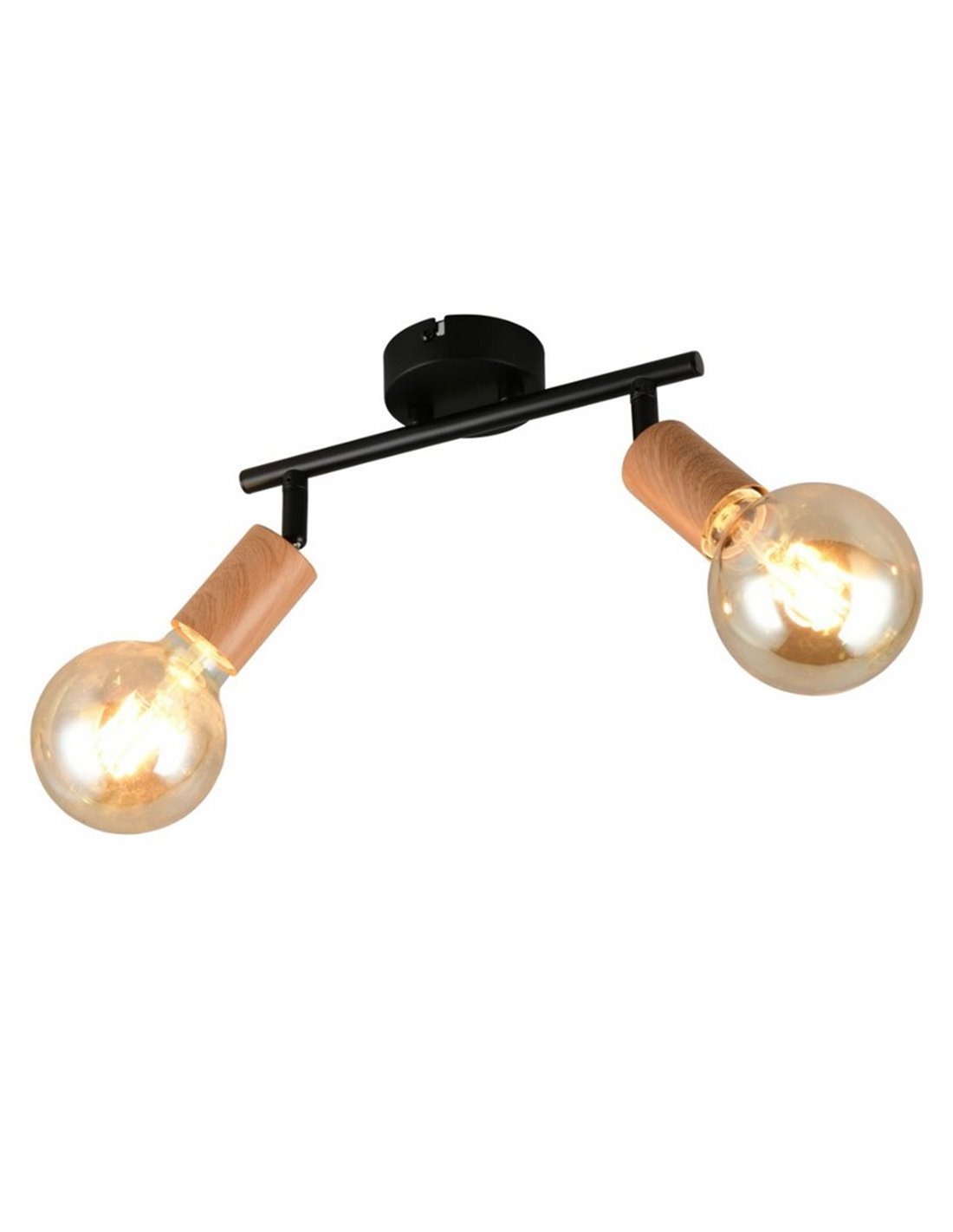2-flammige Leiste LAMEGO schwarz/holz mit Holzeffekt