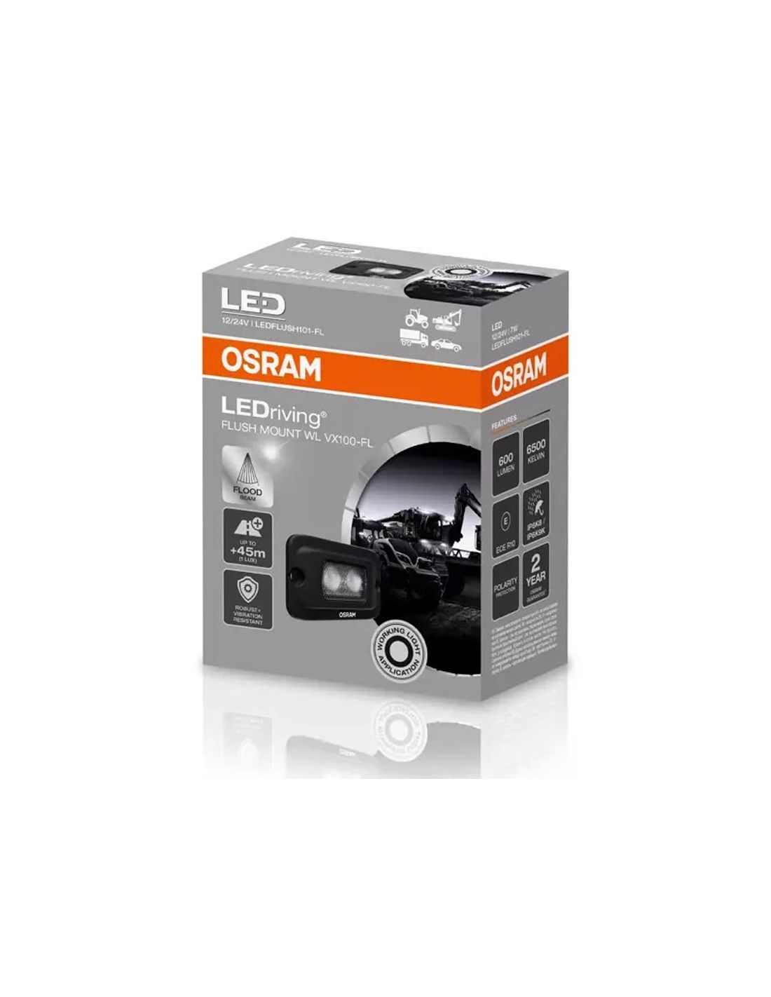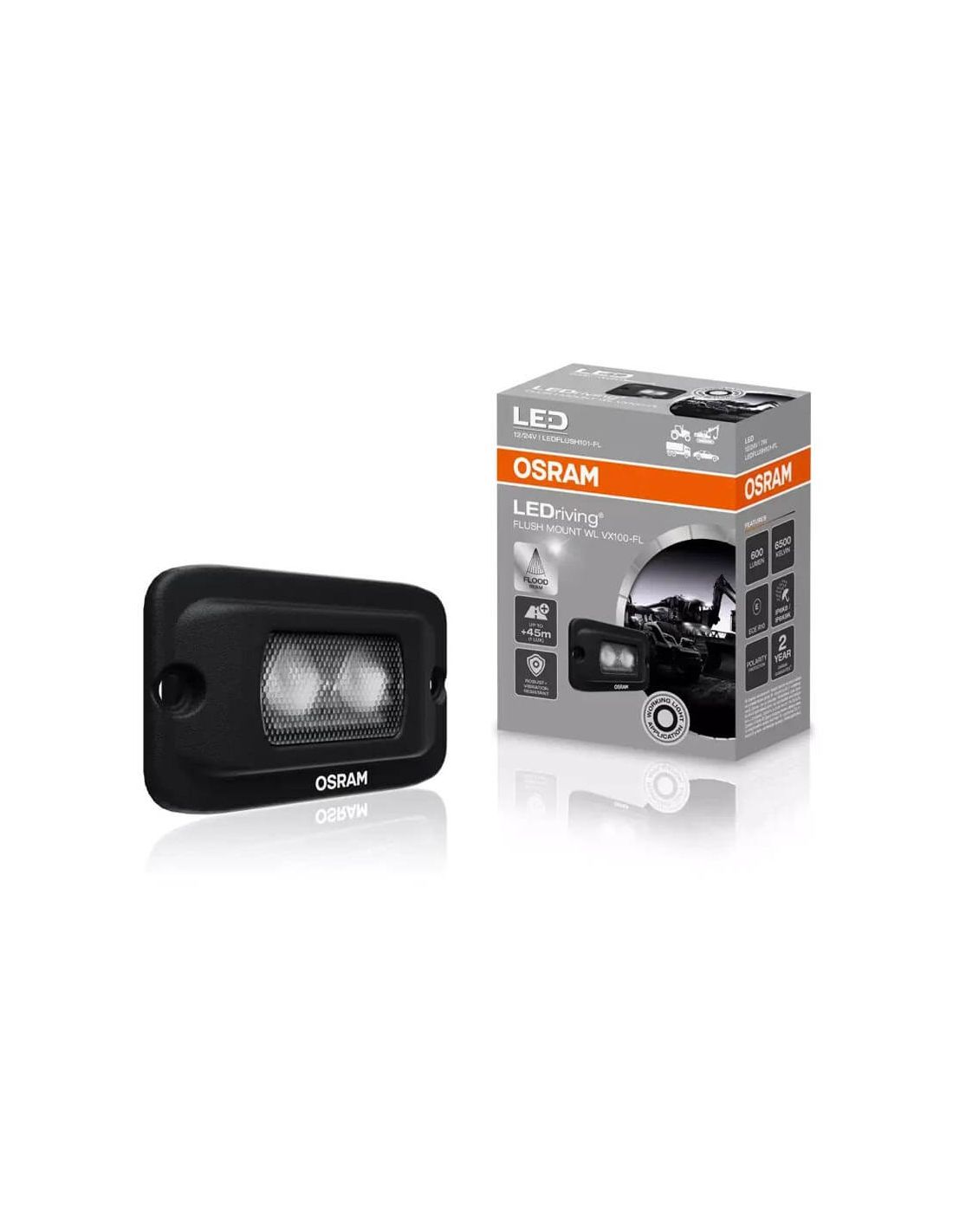 Entdecken Sie die Vielseitigkeit des OSRAM LEDriving Flush Mount WL VX100-FL, einer leistungsstarken und robusten LED-Arbeitslampe, die ideal ist, um Nah- und Fernbereiche zu beleuchten. Mit einem Lichtstrom von bis zu 600 lm, einer Reichweite von 45 Metern und einer Lichtfarbe von 6500 Kelvin ist dieses Licht perfekt für Arbeitsfahrzeuge, Camping und Offroad-Abenteuer geeignet. Kompatibel mit 12 V und 24 V Systemen, bietet es extreme Haltbarkeit mit IP6K8 & IP6K9K-Zertifizierung. 2 Jahre Garantie sind ebenfalls enthalten.