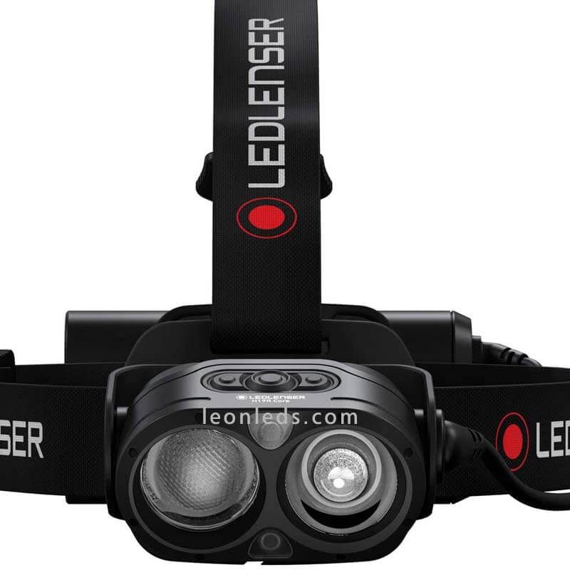 Wiederaufladbare leistungsstarke LED Stirnlampe H19R Core von der Marke LedLenser, die eine maximale Leistung von 3.500 Lumen im Boost-Modus bietet, eine Batterieladezeit von 4 Stunden im Maximalmodus und eine maximale Batteriedauer von 20 Stunden, die Ladezeit beträgt nur 330 Minuten. Der Intensitäts- und Ein-/Ausschalter befindet sich an der Oberseite der Stirnlampe, sie beinhaltet ein rotes Licht für die Nachtsicht und 2 Scheinwerfer mit unterschiedlichen Optiken.